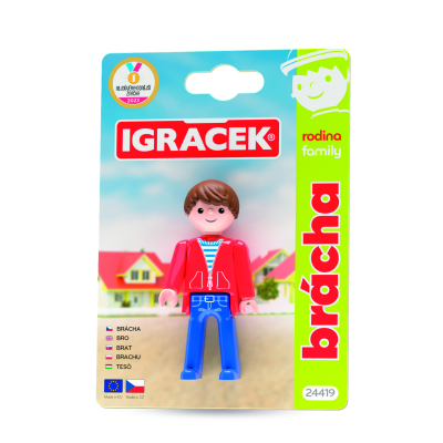 Bráška rád jezdí na kole, hraje na kytaru a dohlíží na mladší sourozence. Hra s Igráčky z edice RODINA pomáhá dětem rozvíjet sociální dovednosti a porozumění rodinným rolím. Legendární postavička od roku 1976. Figurka bez příslušenství. Vyrobeno v ČR.