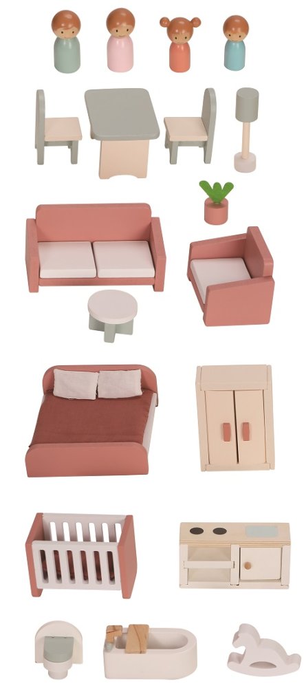 Vítejte v domečku! Na místě, kde příběhy čekají jen na Vás. Díky třem patrům a bohatě prostorným pokojům je pro Vaše malé panenky naprosto ideální. Spolu s rodinkou zde najdete vše, co je u moderní domácnosti zapotřebí – kuchyň, koupelnu, ložnici, obývák i dětský pokoj v podkroví. Sundejte přední část střechy, otočte jí a položte před otevřený domeček a hned máte pro panenky i zahradu s bazénem a nábytkem. Tvořte si rodinné příběhy dle vlastní fantazie! Při hraní děti procvičují komunikační dovednosti, prohlubují sociální interakce a využívají kreativitu Hlavní vlastnosti: oblíbený, tradiční a nadčasový domečekinspiruje k představivé hřetrénuje koordinaci a jemnou motorikuvčetně příslušenství a panenek