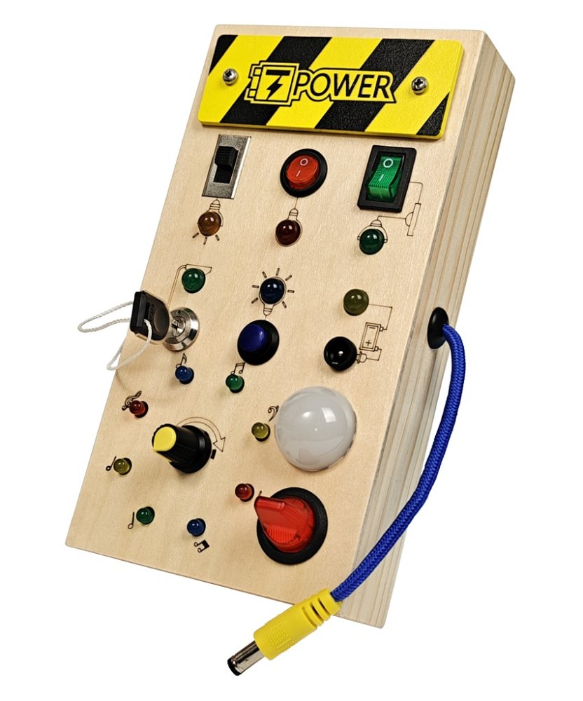 Co se stane, když zasunete zástrčku do zásuvky? Nebo když otočíte klíčkem v zámku či v zapalování? A co musíte udělat, aby se rozsvítilo světlo? Na všechny otázky odpoví tato dřevěná deska s aktivitami, která nabízí spoustu možností ke zkoumání příčiny a následku. Je zábavná a vzdělávací zároveň a podporuje zvídavost a motorické dovednosti malých dětí. Deska je vybavena řadou interaktivních prvků, jako jsou spínače, LED světýlka a další. Světla se rozsvěcují najednou nebo postupně v závislosti na vypínači a aktivují se např. pomocí přiloženého klíče, který je potřeba zasunout do zámku, a také kabelem se zástrčkou, který se zapojí do zásuvky na desce. Tato hračka je navržena tak, aby podporovala přirozený vývoj dítěte a umožňovala objevovat okolní svět pomocí vlastního zájmu a aktivity. Je ideálním doplňkem pro trénink široké škály každodenních dovedností. Hlavní vlastnosti: ukáže dětem, jak funguje příčina a následekrozvíjí jemnou motoriku a koordinaci ruka-okopodněcuje kreativní myšlení a představivostsenzorická stimulace a edukace prostřednictvím hryvyžaduje 2x AAA baterie – nejsou součástí balení