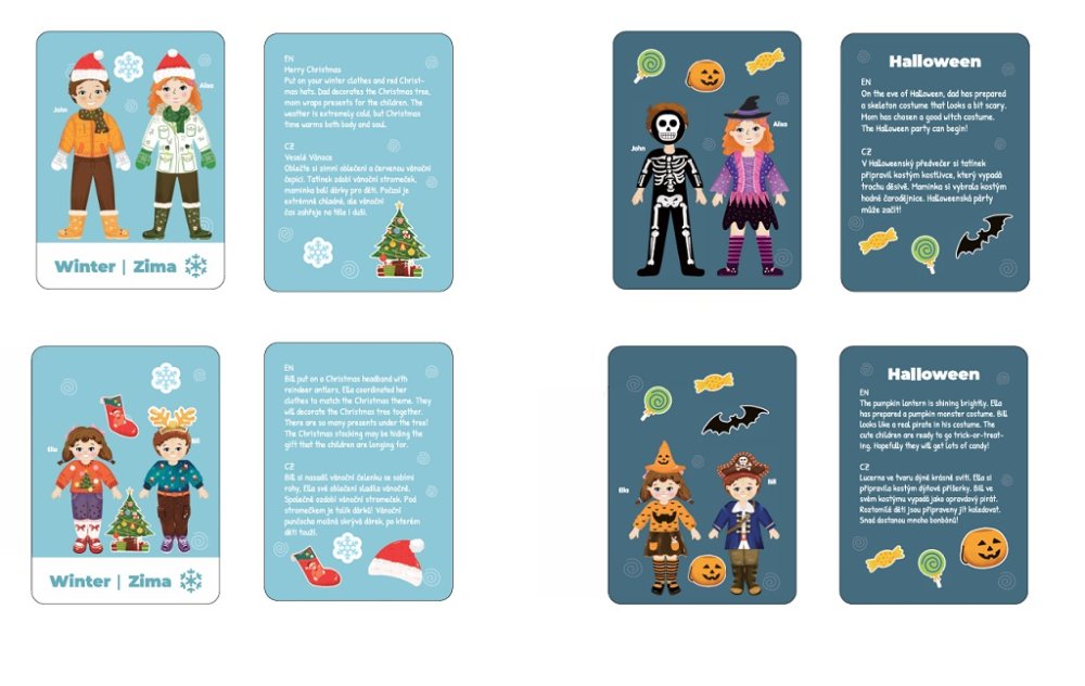 Oblékněte celou rodinu podle ročního období, nálady nebo zábavného úkolu! Magnetická sada „Happy Family“ přináší spoustu kreativní zábavy při navrhování oblečků pro maminku, tatínka, holčičku i chlapečka. Každý člen rodiny má své magnetické oblečky, doplňky a jedinečný styl – a záleží jen na dětské fantazii, jak je oblékne.Součástí sady jsou i tematické kartičky, které děti inspirují ke konkrétním úkolům – např. oblečení na léto či podzim, výlet na pláž, pečení dýňového koláče nebo podzimní sklizeň či zimní radovánky. Děti se tak hravě učí o ročních obdobích, rozvíjejí představivost a zároveň si procvičují jemnou motoriku. Hlavní vlastnosti: dřevěná magnetická krabička s otočnou tabulí4 postavy k oblékání (maminka, tatínek, dcera, syn)více než 80 magnetických dílků oblečení a doplňků8 oboustranných kartiček s příběhy v češtině a angličtině (jaro, léto atd.)rozvíjí jemnou motoriku, fantazii a poznávání ročních obdobípro děti od 3 letideální pro hru doma i na cestách