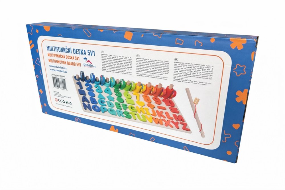 Každý malý šikula si najde to své! Dřevěná multifunkční deska nabízí edukativní hru a pomáhá dětem v koordinaci motoriky, zlepšování koncentrace a rozvoji logického myšlení. Jejím cílem je nejen učení přeměnit na zábavu, ale také vyvinout k učení u nejmenších kladný vztah. Vedle rozpoznávání čísel, tvarů a barev lze v této hře "rybařit" či stohovat kroužky na sebe. Všechny části dřevěné skládačky jsou dimenzovány tak, aby byly ideální pro drobné dětské ruce. Hlavní vlastnosti: multifunkční edukativní hraideální pro trénování motoriky a posílení logického myšlenípodporuje kreativitumění učení na zábavuveselý, pestrý design
