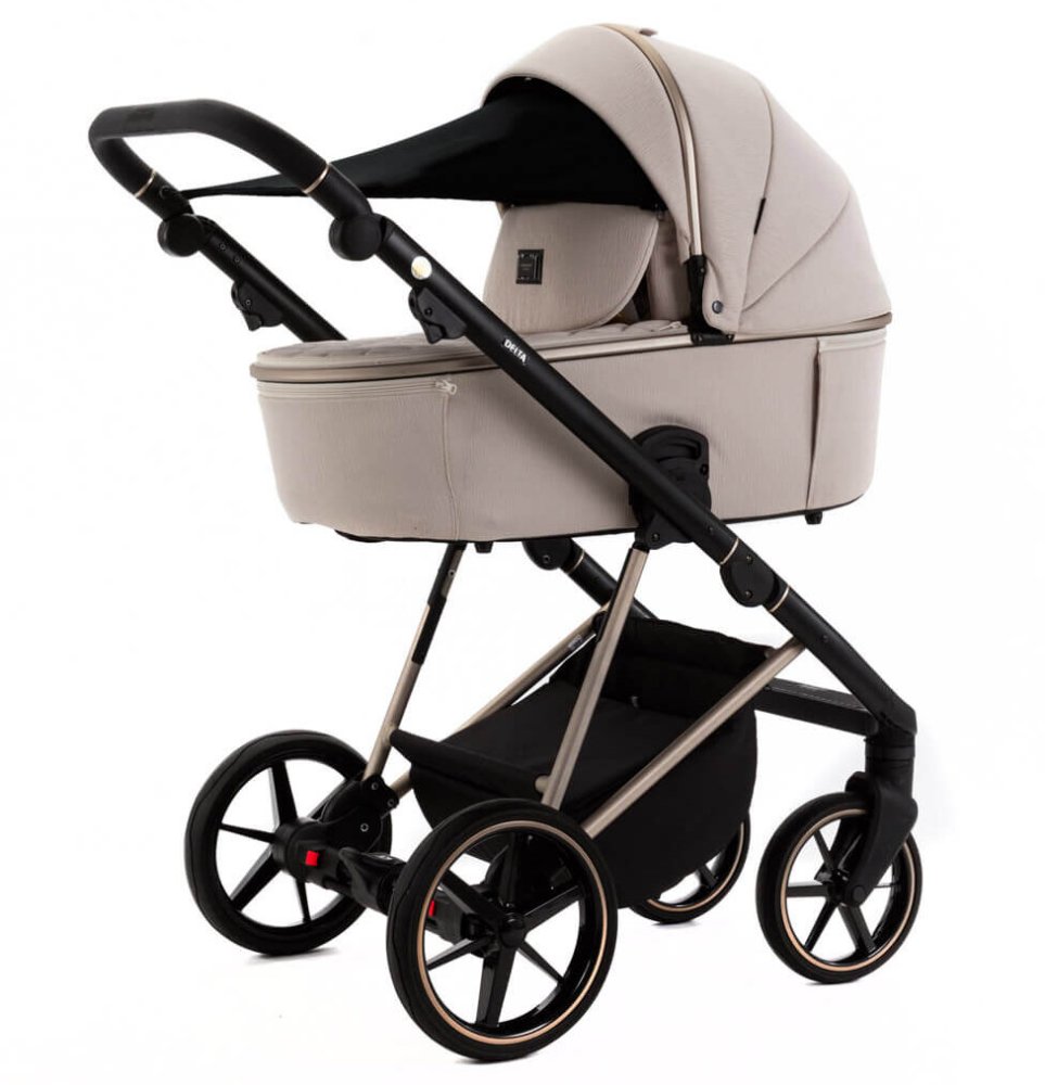 Model kočárku Delta ve variantě Natura je kombinací praktičnosti, funkčnosti a konzistentnosti. Kolekce se vyznačuje pečlivým výběrem barvy podvozku a doplňků, které ladí s barvou látky použité v kočárku – to je to, co je odlišuje od ostatních modelů a kolekcí kočárků. Tyto klidné, jemné a elegantní barevné kombinace odkazují na barvy země a přírody kolem nás.- Delta má praktický systém skládání korbičky, který usnadňuje cestování nebo uskladnění kočárku.- Přenosná korba má dva větrací otvory na zip (vpředu a vzadu), takže se s děťátkem pohodlně cestuje za každého počasí. Ve stříšce korbičky se nachází dodatečný větrací otvor, který z něj činí praktické prodloužení stříšky.- Pro ještě větší pohodlí slouží sluneční clona, která je ideální pro slunečné dny a chrání jemnou pokožku vašeho dítěte před slunečními paprsky.- Pohodlná drážkovaná pěnová matrace umístěná v korbičce díky své elasticitě a flexibilní struktuře zaručuje pohodlí při spánku a vysoce kvalitní odpočinek, kterým je dětský spánek.- Set obsahuje také sportovní sedadlo kočárku, které můžete namontovat na podvozek v obou směrech a co je nejdůležitější, můžete jej složit spolu s podvozkem bez ohledu na směr otočení.- Verze s korbou i sportovní verze mají adaptéry s takzvaným paměťovým systémem – což jsou paměťová tlačítka, která umožňují snadné odstranění korby z rámu jednou rukou. Stačí je stisknout a paměťový systém udrží tlačítka stisknutá, dokud jej neodstraníte.Technické specifikace:- rozměry kočárku s korbou: 99 x 103-117 cm (D x V)- rozměry korby: 84 x 40 x 62 cm (D x Š x V)- rozměry kočárku se sportovní částí: 99 x 110 cm (D x V)- rozměry složeného kočárku: 80 x 58 x 40 cm (D x Š x V)- hmotnost s hlubokou korbou: 12,9 kg- hmotnost korby: 4,7 kg- hmotnost se sportovním sedadlem: 12,5 kg- hmotnost sportovní části: 12,1 kg- nosnost kočárku: 15 kgDůležité! Pokyny si pozorně přečtěte a uschovejte pro pozdější použití.Upozornění:- nikdy nenechávejte dítě bez dozoru- používejte postroj, pokud se dítě dokáže bez pomoci posadit- před použitím si ověřte, že jsou všechny zajišťovací prvky zakleslé- při skládání a rozkládání tohoto výrobku zajistěte, aby dítě nebylo v kočárku a ani blízko něho aby nemohlo dojít k poranění dítěte- tento výrobek není hračka, nedovolte dítěti, aby si s tímto výrobkem hrálo- nepoužívejte tuto sedačku pro děti mladší 6 měsíců- vždy používejte brzdící systém- před použitím zkontrolujte, zda jsou zajišťovací prvky lůžka nebo sedačky nebo autosedačky správně zakleslé- tento výrobek není vhodný pro běhání nebo jízdu na bruslíchDůležité informace:Univerzální dětský kočárek je určen pro děti ve věku 0-36 měsíců s tělesnou hmotností 15 kg. Korba je určena pro děti o hmotnosti maximálně 9 kg. Pokud kočárek nepoužíváte, vždy používejte parkovací brzdu. Nepoužívejte jinou než výrobcem dodanou matraci. Při ukládání a vyjímání dítěte se ujistěte, že je parkovací brzda zajištěna. Maximální zatížení košíku pod kočárkem je 2 kg. Na řidítka kočárku zavěšujte jen tašku na příslušenství, která byla dodána spolu s kočárkem. Její maximální hmotnost je 2 kg, jakákoli zátěž zavěšená na řídítkách má vliv na jeho stabilitu. Kočárek je určen k přepravě jednoho dítěte. Tento podvozek lze používat pouze se sedačkou, vaničkou a autosedačkou, které byly dodány výrobcem v jedné sadě. Používejte výhradně náhradní díly dodávané nebo doporučené výrobcem. Jakékoli doplňkové vybavení, které nebylo uvedeno výrobcem, nesmí být použito. Kočárek nenahrazuje kolébku ani dětskou postýlku. Když potřebuje dítě spát, doporučujeme jej uložit do vhodné vaničky, kolébky nebo postýlky – týká se dětské autosedačky používané spolu s podvozkem kočárku.Pás v rozkroku používejte vždy současně s bederními pásy. Nikdy nenechávejte kočárek s dítětem na svahu, a to ani v případě, že je brzda zajištěna. Malé díly, jako jsou pojistky na vosy, zajistěte během montáže kočárku tak, aby se k nim nedostaly děti. Nikdy neodstavujte kočárek s dítětem v blízkosti bazénů, schodišť a ohně. Plastové části obalu uchovávejte mimo dosah dětí, aby nemohlo dojít k riziku jeho udušení. V případě převážení dítěte se zvednutou hlavovou opěrkou vaničky je bezpodmínečně nutné používat doplňkové bezpečnostní pásy.Zvedání hlavové opěrky nepoužívejte u novorozence. Bezpečnostní popruhy používejte od momentu, kdy vaše dítě začne samostatně sedět. Kočárek slouží k zevnímu použití. Pokud je skladován ve vnitřních obytných prostorách, pak vždy používejte ochranné potahy na kola. Při nájezdu na obrubník nebo jiné vyvýšené místo nadzvedněte přední kola. Silný náraz do překážky může způsobit deformaci konstrukce. S kočárkem nejezděte po schodech. Přenášení dítěte v kočárku po schodech je nebezpečné. Nepřenášejte kočárek jeho zvedáním za řídítka, madlo či stříšku. Kočárek se přenáší uchopením za boky. Zákaz přenášení dítěte ve vaničce přidržující za rukojeť striešky. Pokud došlo k poškození jakékoli části kočárku, nepoužívejte jej. Před montáží se ujistěte, zda je výrobek a všechny jeho součásti v pořádku, jsou-
