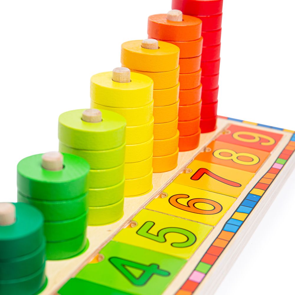Vaše děti budou milovat tuto velmi aktivní hračku, která obsahuje spoustu barevných disků, které se dají nasouvat na sebe po dřevěné tyčce, a číslic, jež se vkládají do dřevěné destičky. Ideální pro rozvíjení zručnosti, koordinaci a samozřejmě máte i možnost rozvíjet v dítěti jeho vztah k počítání.Hlavní vlastnosti: rozvíjí motoriku dětí a koordinaci pohybůnaučí děti rozlišovat tvary, barvy a číslapodporuje logické myšlení dětí hravou formou