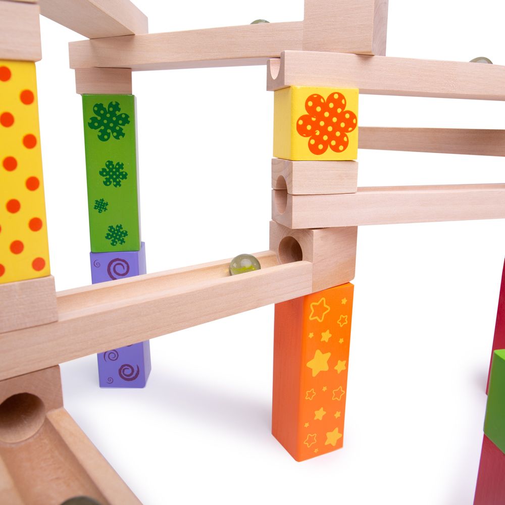 Postavte si barevnou dřevěnou kuličkovu dráhu a s radostí sledujte, jak kuličky sjíždějí shora dolů! Dřevěné kostky vytvoří mnoho různých designů. Skládá se z 53 dílů. Hlavní vlastnosti: ideální pro kreativní hranívyrobeno z vysoce kvalitních a zodpovědně zpracovaných materiálůvyhovuje současným evropským bezpečnostním normámobsahuje 53 dílů