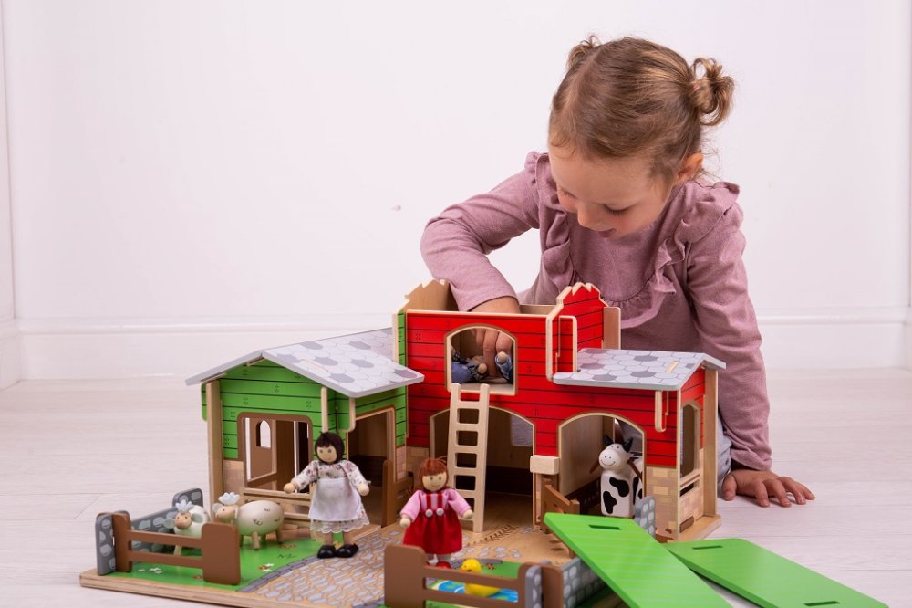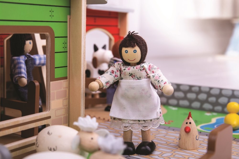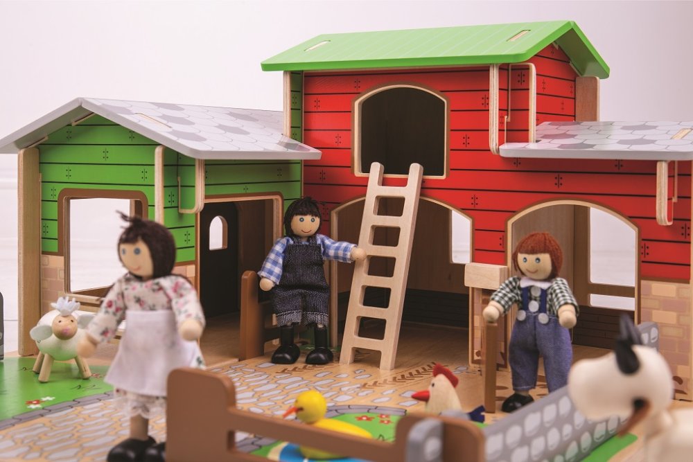 Jste připraveni na rušný den na farmě? Dřevěná farma Cobblestone s otevíracími vraty, stájí, seníkem, kachním rybníkem a také garáži pro traktory. Farmáři se mohou dostat k seníku, když použijí pohyblivý žebřík. Zabezpečí zvířátka v jejich ohradách s pohyblivými vraty. Odnímatelná střecha dětem dovoluje dostat se jednoduše do stodoly a nabízí tak plnohodnotné využití farmy. Idealní velikost farmy pro děti. Jednoduše složte dřevěné dílky do sebe a zábava na farmě může začít! Je to skvělý způsob jak rozvíjet vypravěčské dovednosti, koordinaci, zručnost a jemnou motoriku u dětí. Lze dokoupit další doplňky dle vlastní fantazie. Vyrobeno z kvalitních materiálů z odpovědných zdrojů. Hlavní vlastnosti: pohyblivá vrata, ohrádky farmyodnímatelná střechalze dovybavit dle vlastní fantazierozvíjí komunikační dovednosti, motoriku a koordinaci
