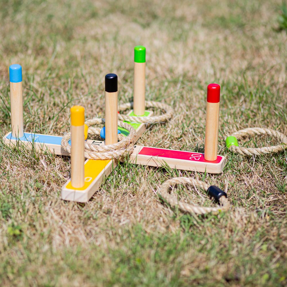 Tato klasická hra dovedností a přesnosti podpoří soutěživost v těch nejmenších, když se pokoušejí přehodit lana přes barevné tyče a dosáhnout tak nejvyššího skóre. Každé lano je barevně sladěné s jednou tyčí. Hrajte jednotlivě nebo s rodinou a přáteli, uvnitř i venku. Hlavní vlastnosti: pomáhá rozvíjet zručnost a koordinaci a zlepšuje matematické dovednostivyrobeno z vysoce kvalitních, zodpovědně dodávaných materiálůodpovídá současným evropským bezpečnostním normám