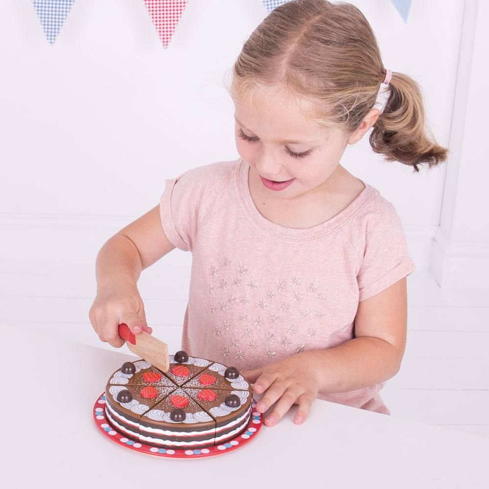 Lahodně vypadající dřevěný čokoládový dort, který vypadá dost dobře na to, aby byl vhodný pro každou párty. Tento dřevěný dort je dodáván spolu s dřevěným servírovacím náčiním. Je dostatečně velký pro šest malých přátel při zvláštní příležitosti nebo jako příloha čajového dýchánku. Skvělý způsob, jak se mohou mladí lidé dozvědět o dělení mezi přáteli nebo rodinou. BigJigs je velký fanoušek zdravé výživy a jaká by byla lepší cesta učit děti o zdravé výživě, než pomocí hraček z našeho sortimentu? Dřevěné hrací jídlo je ideální k tomu, aby se vaše dítě dozvědělo o důležitosti zdravé a vyvážené stravy. A také o tom, odkud naše jídlo pochází a jak ho připravujeme. Hlavní vlastnosti: podporuje kreativní a nápadité hranívyrobeno z vysoce kvalitních, zodpovědně získaných materiálůsplňuje aktuální evropské bezpečnostní normy