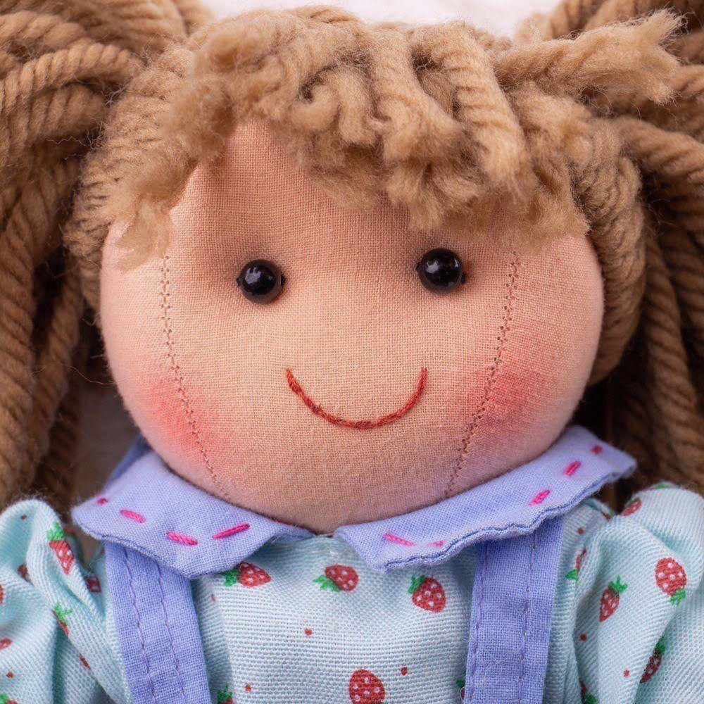 Seznamte se s Grace – veselou, barevnou, látkovou panenkou, s níž si Vaše dítě bude určitě rádo hrát. Panenka je oblečena do kvalitního oblečení v hezkém, bleděmodrém provedení se vzorem červených jahůdek. Měkké látkové panenky jsou skvělým způsobem, jak podpořit kreativní hraní. Hlavní vlastnosti: bezpečné měkké tělíčkohra s panenkou rozvíjí jemnou motoriku a schopnost pomáhat, pečovatk panence Bigjigs Toys lze dokupovat oblečení v příslušné velikostivhodné již od narozeníodpovídá současným evropským bezpečnostním normám