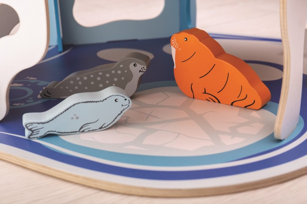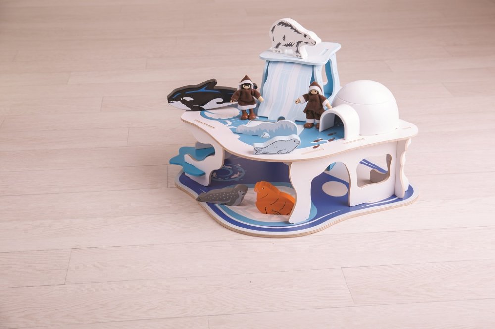 Přiveďte s tímto hracím setem k životu jednu z nejvíce dramatických a fascinujících krajin na Zemi. Tento perfektně detailní dřevěný polární ledovec obsahuje dva eskymáky, šest polárních zvířat, iglů s odnímatelnou střechou a padací dvěře. Eskymáci žijí ve svém iglů a sem tam si uloví nějakou rybu. Pozor na tenký led, jinak můžete propadnout padacími dveřmi! Rozvíjí slovní zásobu, vypravěčské dovednosti a zručnost. Vyrobeno z kvalitních materiálů z odpovědných zdrojů. Hlavní vlastnosti: polární ledovec s dvěmi eskymáky, šesti polárními zvířatyiglů s odnímatelnou střechou a padacími dveřmirozvíjí slovní zásobu, dovednost a zručnost