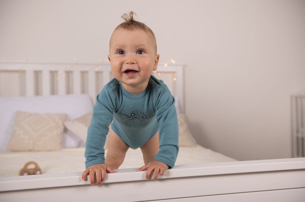 Body ze silného úpletu s dlouhým rukávem skvěle využijete především v chladných měsících. Je vhodné jako spodní vrstva při oblékání na ven, ale v kombinaci s tepláky nebo dupačkami je možné jej nosit i doma. Body je vyrobeno z pružného příjemného materiálu, který se přizpůsobí více velikostem. Maminky jistě ocení zapínání na druky u krku a v rozkroku, díky kterému se body velmi lehce a rychle obléká. Při výrobě tohoto body byl použitý materiál Outlast® ve smykové variantě, která je z líce hladká a z rubu má smyčky. Materiál Outlast® dokáže během nošení regulovat tělesnou teplotu, odvádět přebytečné teplo a zabránit propocení. Ve chvíli, kdy tělesná teplota klesne, materiál Outlast® nahromaděné teplo uvolní a začne tělo zahřívat. Oblečení z materiálu Outlast® je díky svým termoregulačním vlastnostem velmi oblíbené, neboť zajišťuje teplotní komfort po celou dobu nošení. Body s dlouhým rukávem je vhodné na podzimní, zimní a jarní měsíce.