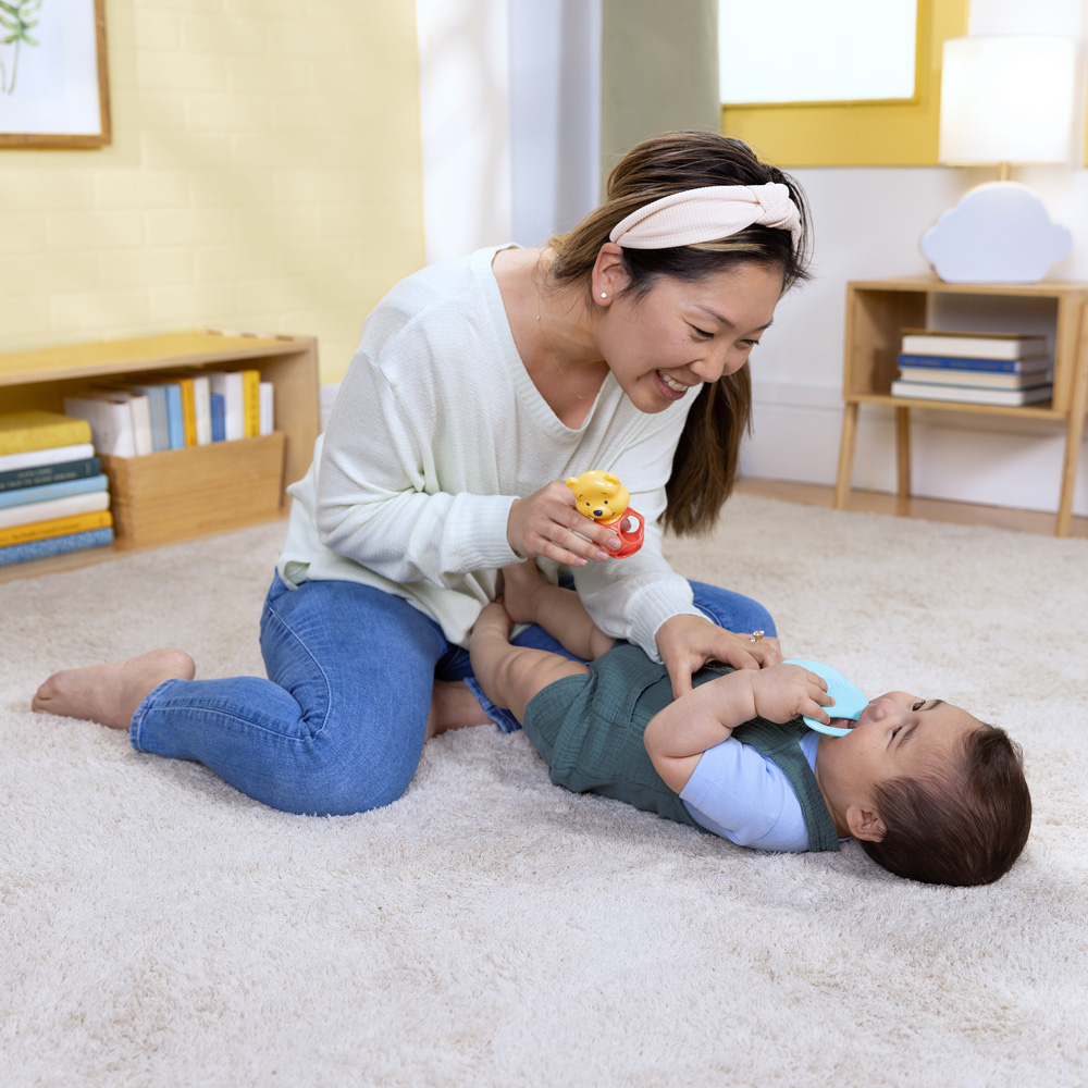 Rozzařte čas hraní nejmenších s touto roztomilou sadou Disney Baby Winnie the Pooh! Sada 2v1 obsahuje pružné, lehce uchopitelné chrastítko typu Oball s motivem milovaného Medvídka Pú a kousátko ve tvaru medového hrníčku pro úlevu…