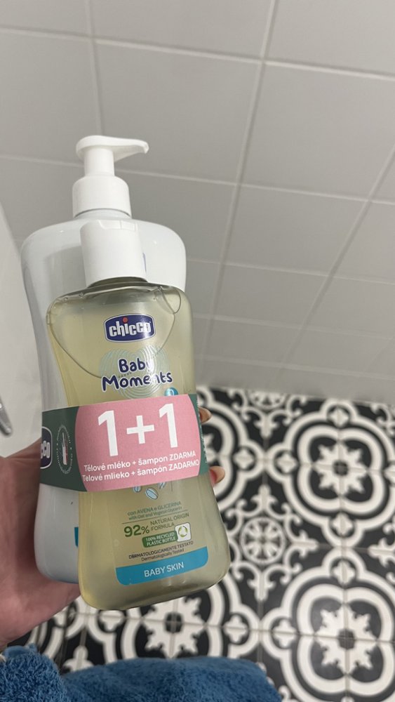 Tělové mléko zvlhčuje dětskou pokožku a pomáhá ji tak udržovat jemnou a hebkou.Obsahuje sladké mandlové mléko, které pokožku vyživuje a zvláčňuje.Vlastnosti:- Receptura s 87% přírodních složek- Nemastná textura, rychle se vstřebává- Dermatologicky a oftalmologicky testováno- Nezaměnitelná jemná vůně Chicco Baby Moments- Určeno: pro děti od narození- Objem: 500 mlSložení:AQUA (WATER), DIETHYLHEXYL CARBONATE, GLYCERIN, ETHYLHEXYL STEARATE, GLYCERYL STEARATE, PEG-100 STEARATE, PANTHENOL, PRUNUS AMYGDALUS DULCIS OIL [PRUNUS AMYGDALUS DULCIS (SWEET ALMOND) OIL], PROPYLENE GLYCOL, CAPRYLYL GLYCOL, TOCOPHERYL ACETATE, PARFUM (FRAGRANCE), ETHYLHEXYLGLYCERIN, ACRYLATES/VINYL ISODECANOATE CROSSPOLYMER, SHOREA STENOPTERA SEED BUTTER, PRUNUS AMYGDALUS DULCIS FRUIT EXTRACT [PRUNUS AMYGDALUS DULCIS (SWEET ALMOND) FRUIT EXTRACT], MAGNESIUM ALUMINUM SILICATE, XANTHAN GUM, CITRIC ACID, SODIUM HYDROXIDE, SODIUM GLUCONATE.Jemný šampon na tělo a vlasy s neutrálním pH je vhodný pro mytí citlivé dětské pokožky a vlasů již od první koupele.Vlastnosti:- Jeho jemná formule nedráždí dětské oči- Respektuje hydrolipidovou rovnováhu jemné pokožky dětí- Receptura s 92% přírodních složek, obsahuje výtažky z ovsa a rostlinného glycerinu- Dermatologicky a oftalmologicky testováno- Nezaměnitelná jemná vůně Chicco Baby Moments- Určeno: pro děti od narození- Objem: 200 mlSložení:AQUA (WATER), GLYCERIN, COCAMIDOPROPYL BETAINE, SODIUM COCOAMPHOACETATE, ETHYLHEXYLGLYCERIN, PHENOXYETHANOL, DECYL GLUCOSIDE, PARFUM (FRAGRANCE), ACRYLATES/C10-30 ALKYL ACRYLATE CROSSPOLYMER, GLYCERYL OLEATE, COCO-GLUCOSIDE, GLYCERYL CAPRYLATE, SODIUM HYDROXIDE, POLYQUATERNIUM-10, SODIUM GLUCONATE, PROPYLENE GLYCOL, AVENA SATIVA STRAW EXTRACT [AVENA SATIVA (OAT) STRAW EXTRACT], LACTIC ACIDKontakt dodavatele: ARTSANA SPA, Via S. Catelli 1 – 22070, Grandate (CO), Italy, www.chicco.com, +39 800 188 1259