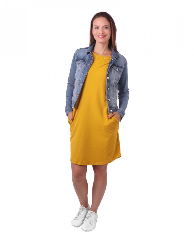 Dámské bavlněné oversized šaty s kapsami Zoe, hořčicové S/M