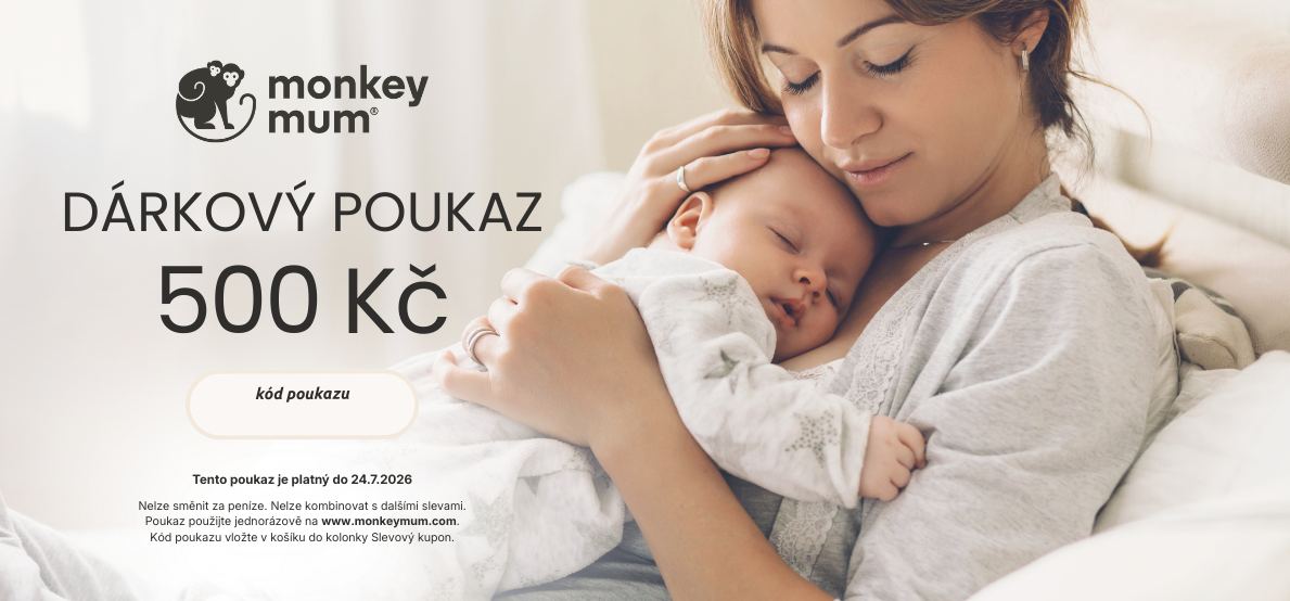 Dárkový poukaz lze použít jednorázově na nákup v dané nebo vyšší hodnotě nákupu na webu www.monkeymum.com. Poukaz není směnný za peníze.