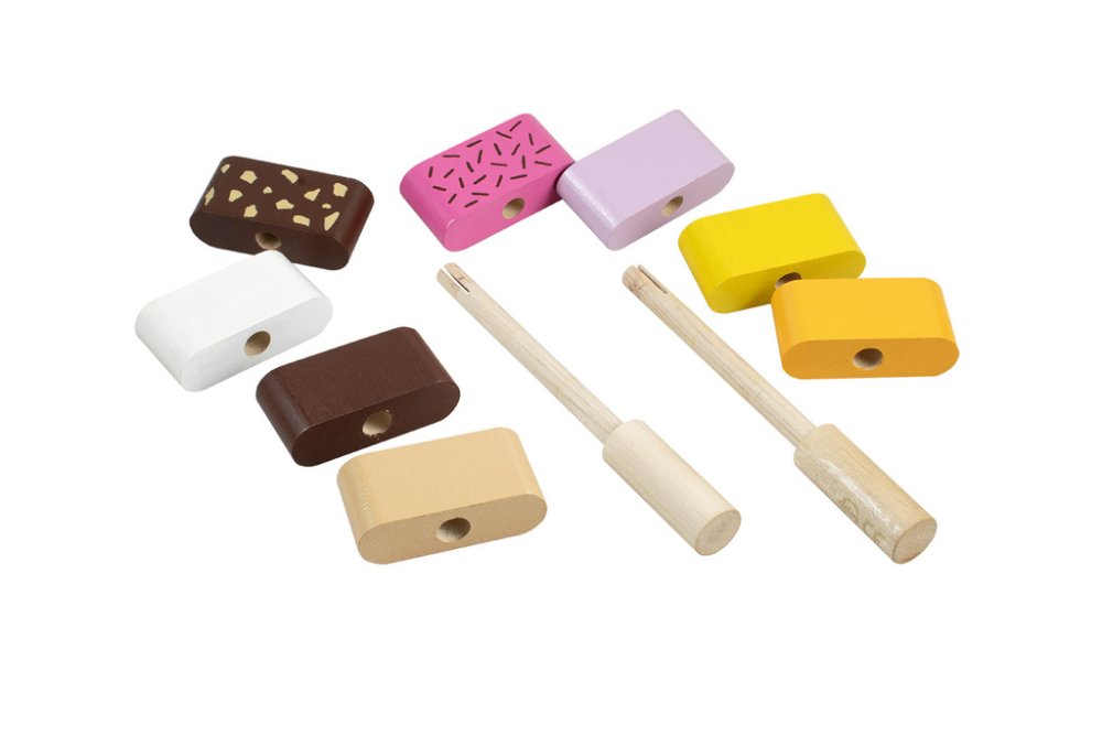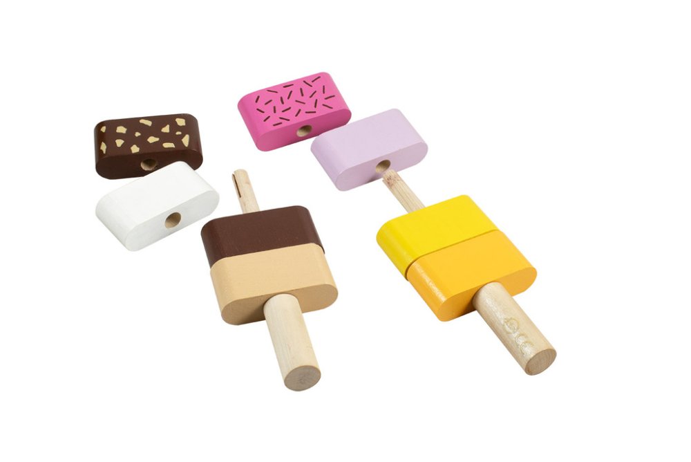Dřevěná motorická hračka, která upoutá svou barevností. Vhodné pro rozvoj představivosti a logického myšlení. U těchto skládacích nanuků si dítko může nakombinovat barvy, jak se mu zlíbí. Nasazováním dílků na tyč si navíc procvičuje jemnou motoriku. Hračka obsahuje 2 tyčky na navlékání, 6 dílků s otvorem a 2 koncové dílky. Odpovídá aktuálním evropským bezpečnostním normám. Hlavní vlastnosti: barevná motorická hračkarozvíjí představivost a logické myšleníprocvičuje jemnou motoriku2 tyčky, 6 průchozích dílků, 2 koncové dílkykombinace dílků dle vlastní fantazie