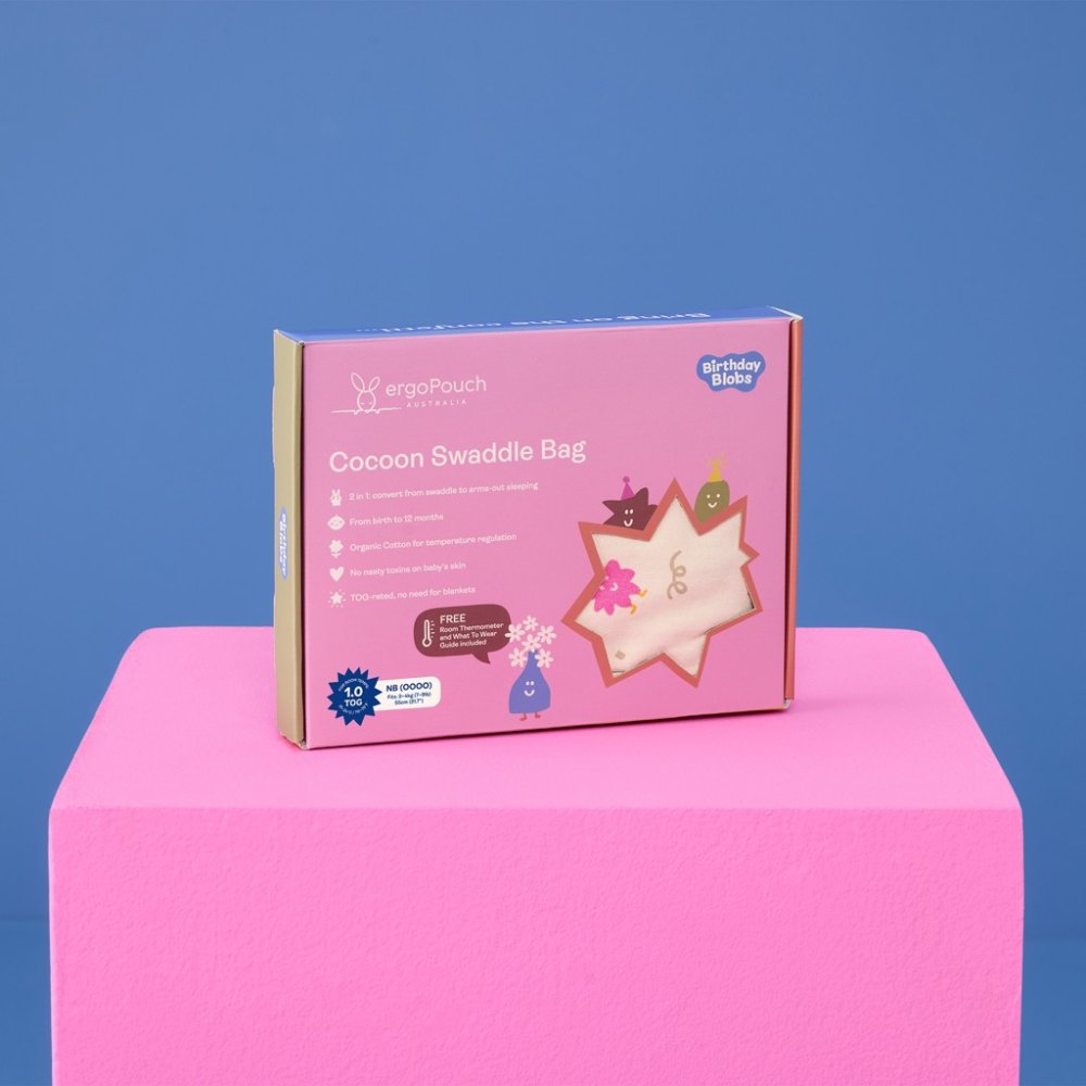 Kolekce Birthday Blobs je navržena pro nezapomenutelné narozeninové okamžiky – ideální pro ty, kteří vítají nového člena rodiny nebo slaví speciální věk. Objevte postavičky jako Boo, Bella, Basil, Bear a dalších, které přinesou vašim dětem smích a radost při každém usínání.Tyto zábavné postavičky jsou ideální pro oslavení výjimečných narozenin a zpříjemní každou noc před velkým dnem. Vaše děťátko bude připraveno k narozeninové oslavě ihned po probuzení. Kolekce přináší hravé designy, které se skvěle hodí k našim ostatním produktům.Tento exkluzivní design byl vytvořen u příležitosti oslavy 15. výročí značky Ergopouch. Produkty jsou zabaleny ve speciálním narozeninovém balení, které je připraveno k okamžitému darování.Co je TOG? TOG je zkratka pro Thermal Overall Grade a je to jednotka měření izolace a hřejivosti spacích oděvů a ložního prádla. Čím nižší je hodnocení TOG, tím je látka lehčí; čím je hodnocení vyšší, tím je látka více vycpaná a izolována.Je navržena tak, aby se dala snadno používat a aby se z ní těžko unikalo. Tato zavinovačka se zipem má tepelnou třídu TOG, aby udržela dítě v pohodlí a bezpečně zavinuté bez potřeby složitého zavinování od prvního dne. Označení TOG znamená, že zavinovačka 1 TOG se může používat samostatně při pokojových teplotách mezi 21-24 °C bez přikrývky v postýlce nebo v kolébce, aby byla bezpečnou možností spánku pro novorozence nebo dítě. Oblast hrudníku je dimenzována na 1,0 TOG, aby se zabránilo přehřátí a umožnilo se úplné rozšíření hrudníku při dýchání. Rodiče si mohou podle potřeby navrstvit spodní vrstvu, aby se dítě zahřálo, a řídit se naším praktickým pokojovým teploměrem ZDARMA a příručkou. Co si obléct, která je součástí výrobku, aby mohli své dítě vhodně obléct.Pytel Cocoon Swaddle je vyroben a vyplněn organickou bavlnou s certifikátem GOTS, s elastanem ve vnější tkanině a bambusem v podšívce. To znamená, že je dostatečně pevný, aby omezil úlekový reflex, a zároveň umožňuje roztahování a pohyb pro zdravý růst. Roztaženost umožňuje větší pohodlí a děťátku umožňuje pohybovat rukama do polohy, ve které se samo usadí uvnitř zavinovačky. Měkká, prodyšná organická bavlna a bambus jsou certifikovány jako netoxické, barvené barvivy na bázi vody a šetrné k pokožce novorozenců a pokožce se sklonem k výskytu ekzémů. Zip chrání i jemnou pokožku vašeho dítěte a praktické cvočky na ramena umožňují přeměnit Cocoon ze zavinovačky s rukama na spací pytel s rukama, když dítě vykazuje známky převracení. Zvonovitý tvar je schválen Mezinárodním institutem pro dysplazi kyčle jako zdravý pro kyčle a podporuje správný vývoj kyčlí a ramenních kloubů. Obousměrný zip umožňuje rychlou a snadnou výměnu plenky během spánku s minimálním narušením.Pytel Cocoon Swaddle Bag splňuje všechny bezpečnostní normy v Austrálii a na Novém Zélandu a je přezkoumán Asociací pro ekzémy v Austrálii jako výrobek šetrný k pokožce.Produkt zavinovačka a spací pytel Cocoon získal dvě ocenění v Austrálii. TELL ME BABY a MADE FOR MUMS .MADE FOR MUMSPo 3 000 hodinách hodnocení a téměř 1 000 výrobcích, které byly odeslány k důkladnému testování s miminky, batolaty, rodiči a budoucími rodiči .Zavinovačka a pytel na spaní Cocoon získala ocenění MadeForMums Awards 2024 .TELL ME BABYNa rozdíl od mnoha jiných ocenění, vítěze Tell Me Baby Award nevybírá porota. Jsou založeny na skutečných recenzích australských rodičů, kteří si výrobky nezávisle koupili a používali – takže víte, že výsledkům se dá věřit.Zavinovačka a pytel na spaní Cocoon získali ocenění Tell Me Baby Award.Vlastnosti:- organická bavlna s certifikátem GOTS- prodyšná přírodní vlákna- super elastický- zvonovitá spodní část- přeměna na spací pytel- udržuje dítě v pohodlí- hodnocení TOG pro teplo- zapínání na zip- dvoucestný zip- certifikovaná netoxickost- vhodné ke krmení- nejsou zapotřebí žádné přikrývky- lze prát v pračceZavinovačku a pytel 2v1 položte na rovný, nízký povrch s rozepnutým zipem a zavřenými ramenními cvočky.Položte dítě na zavinovačku a pytel 2v1. Nožičky zastrčte do zavinovačky a zip zapněte tak, aby byly ruce dítěte v požadované poloze (po bocích nebo na hrudi).Chcete-li vyměnit plenku nebo ochladit dítě, rozepněte zip ze spodní části zavinovačky_pytle, abyste uvolnili nožičky a spodní část trupu. Po skončení se zip opět zavře.Podle potřeby pod ni navrstvěte teplou vrstvu.Když chcete přejít na spánek s rozepnutýma rukama, když se objeví známky převracení, uvolněte ruce rozepnutím cvočků na ramenou. Doporučujeme to dělat postupně po jednom rameni po dobu několika dní.Chcete-li získat názorný návod, jak to všechno probíhá, podívejte se na naše video Jak se zavinuje.