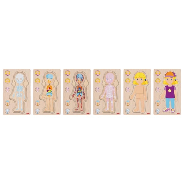 Máte zvídavé dítě, které se pořád na všechno vyptává a zajímá ho, jak věci fungují? A chce vědět, jak to vypadá uvnitř těla? Toto dřevěné puzzle skládající se z barevných vrstev názorně ukáže vnitřní uspořádání dívčího těla – kostru, krevní oběh, vnitřní orgány a svaly. Svlékejte vrstvu za vrstvou a prozkoumejte malé a velké kosti, tepny a žíly. Najdete, kde se nacházejí plíce, játra nebo slezina? Toto dřevěné puzzle přináší nejen nové poznatky, ale trénuje současně motorické dovednosti dětí. Hlavní vlastnosti: lidské tělo zobrazeno v pěti vrstváchrozvíjí touhu po vědění a znalostitrénuje jemnou motorikuvhodné jako výuková pomůcka pro menší děti