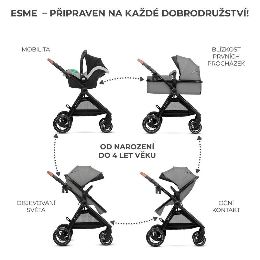 Přitahujte pohledy během každodenních procházekSeznamte se s ESME – multifunkčním dětským kočárkem 3 v 1, který vás ohromí svou funkčností v kombinaci s výjimečným designem. Tlumené barevné provedení, pečlivá povrchová úprava a prvky z ekokůže učiní vaše každodenní procházky ještě příjemnějšími. Kočárek je vybaven velkou korbičkou s ventilačním panelem, kterou lze snadno přeměnit na sedačku do kočárku. Toto řešení 2 v 1 vám ušetří spoustu úložného prostoru, když je čas, aby vaše ratolest přesedla na sedačku kočárku.ESME se dá složit do kompaktní velikosti a obsahuje funkci TRAVEL SYSTEM (autosedačka a adaptéry jsou součástí dodávky). Kočárek ESME 3 v 1 je také vybaven velkými gumovými kolečky TPE s tlumením nárazů, vhodnými do každého terénu – jsou odolné proti propíchnutí a nevyžadují pumpování. ESME je kočárek, který vás bude doprovázet jak na každodenních procházkách, tak na delších výletech na dovolené.ESME je praktický multifunkční kočárek 3v1 s nosností až 25 kg (maximální hmotnost dítěte: 22 kg, nosnost košíku: 3 kg), určený pro děti od narození až do předškolního věku. Byla vytvořena, aby vám usnadnila společné procházky: sada obsahuje nejen praktické příslušenství (držák na šálek, univerzální nánožník, pláštěnku, rodičovskou tašku), ale také adaptéry a bezpečnou autosedačku MINK PRO i-Size.Snadná přeměna z korbičky na kočárekESME 3 v kočárku kombinuje výjimečný design s funkčními řešeními. Je vybavena transformovatelnou sedačkou 2 v 1, kterou lze snadno změnit z korbičky na sedačku do kočárku – ušetří vám spoustu místa, když je čas, aby vaše dítě přešlo na sedačku kočárku.Snadná jízdaESME je kočárek, se kterým se neuvěřitelně snadno jezdí. Je elegantní a má přední otočná kola, která se otáčejí o 360 stupňů, takže se s ním snadno manévruje i v přeplněných ulicích. Pro jízdu v drsnějším terénu je můžete uzamknout. ESME můžete úspěšně tlačit pouze jednou rukou!Snadné skládáníKočárek lze velmi snadno složit do kompaktní velikosti – dokonce i s nasazeným sedadlem: tímto způsobem jej můžete bez problémů vzít na dovolenou. Odjet na delší dobu nebo je to každodenní výlet na procházku do přírody? Nezáleží na tom: ESME složíte během pár okamžiků a snadno se vejde do kufru.Velká korbička s ventilačním panelemESME se stará o děti od narození: kočárek je vybaven velkou pohodlnou korbou, která pojme i větší děti. Má měkkou vložku zvyšující komfort při chůzi a praktický ventilační panel, který zajišťuje proudění vzduchu během horkého počasí.Velká kola s tlumením nárazů, vhodná do všech terénůESME je kočárek do každého terénu: má velká kola odolná proti propíchnutí s plným tlumením nárazů, vyrobená z TPE pryže odolné proti oděru. Není třeba je pumpovat a jsou vhodné jak na chodníky, tak na zpevněné lesní cesty. Pod sedákem se nachází košík s nosností až 3 kg, do kterého se vejde veškeré potřebné příslušenství.Technické parametry:- rozměry rozloženého kočárku: 100 x 102,5 x 60 cm (D X V X Š)- rozměry složeného kočárku: 40 x 72 x 60 cm (D X V X Š)- hmotnost podvozku se sportovní sedačkou: 10,45 kg- pro děti od narození do 22 kg- nosnost košíku: 3 kg- celková nosnost kočárku: 25 kg(CS) Výrobek je určen pro děti ve věku/hmotnosti: gondola od narození do 9 kg, autosedačka od narození do 13 kg, kočárek od 6 měsíců do 22 kg nebo do 4 let, podle toho, co nastane dříve. UPOZORNĚNÍ! Tento výrobek není vhodný pro běhání nebo jízdu na bruslích.Týká se gondoly: UPOZORNĚNÍ! Tento výrobek je určen pro děti, které nemohou sedět bez pomoci, obracet se anebo chodit po čtyřech. Maximální hmotnost dítěte: 9 kg. Platí pro autosedačku: UPOZORNĚNÍ! Toto je Universální pásovývylepšený dětský upevňovací systém. Je schválen podle předpisu OSN č. 129, pro použití především v „univerzálních polohách k sezení“, uvedených výrobcem vozidla v uživatelské příručce vozidla. V případě pochybností se obraťte na výrobce vylepšenéhodětského upevňovacího systému nebo na prodejce. JE ZAKÁZÁNO používat dětskou autosedačku na sedadlech vybavených aktivním, předním airbagem, protože to může být nebezpečné. DŮLEŽITÉ – TIŠTĚNÝ, PAPÍROVÝ NÁVOD K OBSLUZE NENÍ SOUČÁSTÍ TOHOTO VÝROBKU. NÁVOD K OBSLUZE NALEZNETE NA TÉTO INTERNETOVÉ STRÁNCE: www.kinderkraft.com/manual/mink-pro-i-sizeAdresa dodavatele: Supl4kraft sp. z o.o.ul. Tatrzanska 1/5,60-413 Poznan, Polandsupport@kinderkraft.comwww.kinderkraft.com