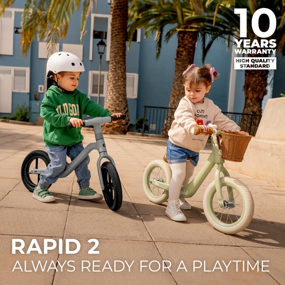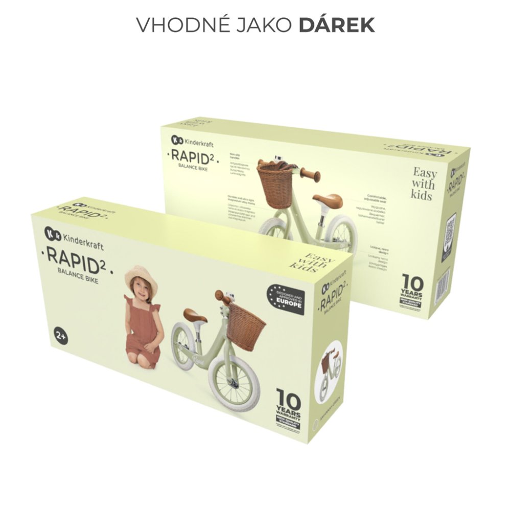 Objevte radost z procházek v retro designu! Toto kolo s košíkem si zamilují děti i jejich rodiče. Díky velkým gumovým kolům je ideální na výlety po městě i na dobrodružství v lese. Kola dobře tlumí při jízdě na nerovném terénu.Pohodlné sedlo umožňuje široký rozsah nastavení výšky, takže kolo roste spolu s vaším dítětem. Kolo RAPID má také omezení obratu říditek, které chrání dítě před nekontrolovaným zatáčením při učení jízdy. A nízko posazený rám usnadňuje nasedání a sesedání. Balanční kolo RAPID, stejně jako každé jiné balanční kolo Kinderkraft, podporuje rozvoj rovnováhy a motoriky. Zároveň ve vašem dítěti vzbudí lásku k venkovním aktivitám.Lehké a pevnéKolo RAPID je nejen stylové, ale zároveň lehké a pevné. Váží necelých 3,7 kg a díky rámu z hořčíkové slitiny je také mimořádně odolné.Gumové rukojetiŘíditka mají gumové rukojeti, které navíc nekloužou. To vašemu dítěti usnadní řízení kola v jakékoli situaci, aniž by mu hrozilo sklouznutí rukou z řídítek. Součástí je krásný košík na drobnosti.Nízko posazený rámKolo RAPID je vhodné i pro mladší děti. Nízko posazený rám usnadňuje nasedání a sesedání menších dětí.Nastavitelná sedačkaDěti v tomto věku rychle rostou – proto má kolo RAPID nastavitelnou sedačku, kterou můžete snadno přizpůsobit výšce dítěte. Sedačku lze nastavit v rozmezí 33,5-41,5 cm.Omezení obratu řídítekBalanční kolo RAPID je vybavené funkcí omezení úhlu natočení řídítek. Tím se eliminuje riziko náhlého, nekontrolovaného zatáčení během výuky jízdy.Kola s amortizacíKolo RAPID má velká gumová kola s ložisky. Poskytují dobré odpružení jak při jízdě po chodníku, tak na nerovných lesních cestičkách.Technické parametry:- rám: slitina hořčíku (magnézia)- kola: gumová- košík: plastRozměry:- rozložené: 71 x 52,5 x 39,5 cm- nastavení sedla: 33,5-41,5 cm- kola: 30 cm- hmotnost: 3,7 kg(CS) Upozornění! Je třeba používat ochranné prostředky. Nepoužívat v silničním provozu. Hračku je nezbytné používat na plochých površích bez překážek. Během používání je doporučen neustálý dohled dospělé osoby. Tento produkt je určen pro jednoho uživatele s maximální hmotností 35 kg.Adresa dodavatele: Supl4kraft sp. z o.o.ul. Tatrzanska 1/5,60-413 Poznan, Polandsupport@kinderkraft.comwww.kinderkraft.com