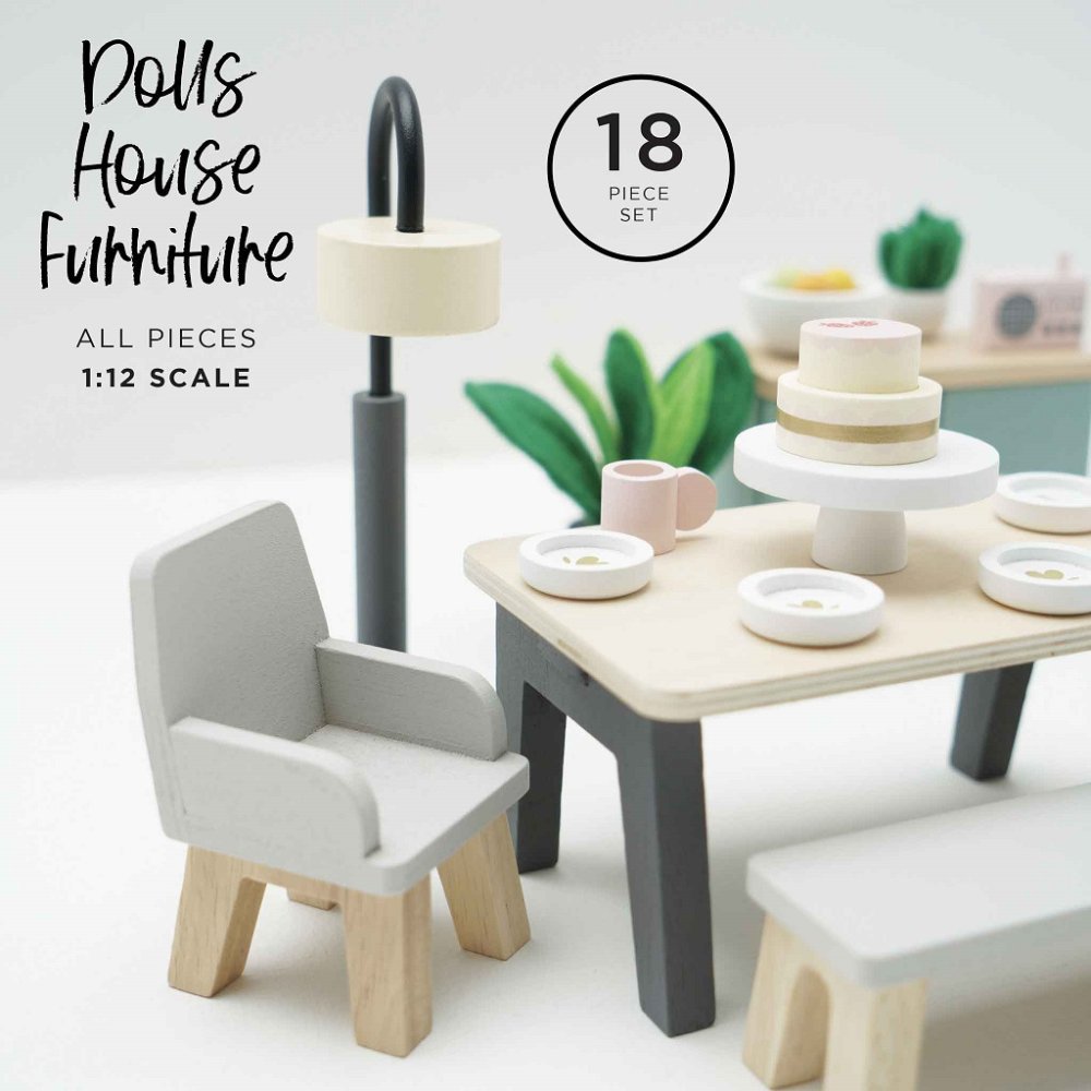 Pokochejte se tímto úžasným dětským jídelním setem s nádechem moderní elegance, který je dokonalým doplňkem do každého miniaturního domečku pro panenky. Stylová a udržitelná je tato 18dílná sada vyrobena z FSC ® certifikovaného dřeva. Dřevěný stůl se dvěma křesly a lavicí, doplňuje volně stojící lampa, příborník, 2 rostliny s realistickými plstěnými listy, mísa na ovoce s dřevěným ovocem, rádio, 4 jídelní talíře se dvěma hrníčky a také vynikající dort naaranžovaný na stojánku k pokušení malých hostů u večeře. Tato sada je kompatibilní s naší řadou úžasných domečků pro panenky. Hračky s účelemVšechny hračky firmy Le Toy Van jsou vyrobeny s cílem – aby dlouho vydržely. Designovány s láskou zkušenými řemeslníky za použití etických praktik a udržitelných materiálů, které jsou laskavější k naší planetě. Hlavní vlastnosti: vybavení jídelny z řady nábytku Daisylanekompatibilní se všemi našimi domečky Le Toy Van Dollsvytvořte si s tímto setem vlastní příběhyinspiruje k sociální hře, rozvíjí komunikační dovednostidekorováno pomocí netoxických barev na vodní bázivyrobeno s certifikací FSC® Daisylane kolekce: Prestižní kolekce domečků pro panenky a doplňků firmy Le Toy Van. Před více než 25 lety zakladatel Georges navrhl svůj úplně první domeček pro panenky, stavební kámen této firmy. Vyrobeno eticky z udržitelných materiálů, dřevěné domečky pro panenky Daisylane jsou jedinečné a nebudou dětskou představivost držet zpátky. Rodinné dědictví, opravdová investice do hraní. Značka a certifikát FSC® (Forest Stewardship Council) zaručuje, že dřevo, ze kterého byl produkt vyroben, nebylo vytěženo nelegálně a pochází z lesů obhospodařovaných šetrným či přírodě blízkým způsobem, ve kterém jsou dodržovány přísné environmentální a sociální požadavky. Značka FSC® na výrobku znamená, že svým nákupem pomáháte chránit lesy a podporujete šetrné, odpovědné či přírodě blízké hospodaření, díky kterému jsou naše lesy stabilnější, zdravější, mají přirozenou druhovou skladbu a lépe odolávají negativním následkům klimatických změn.