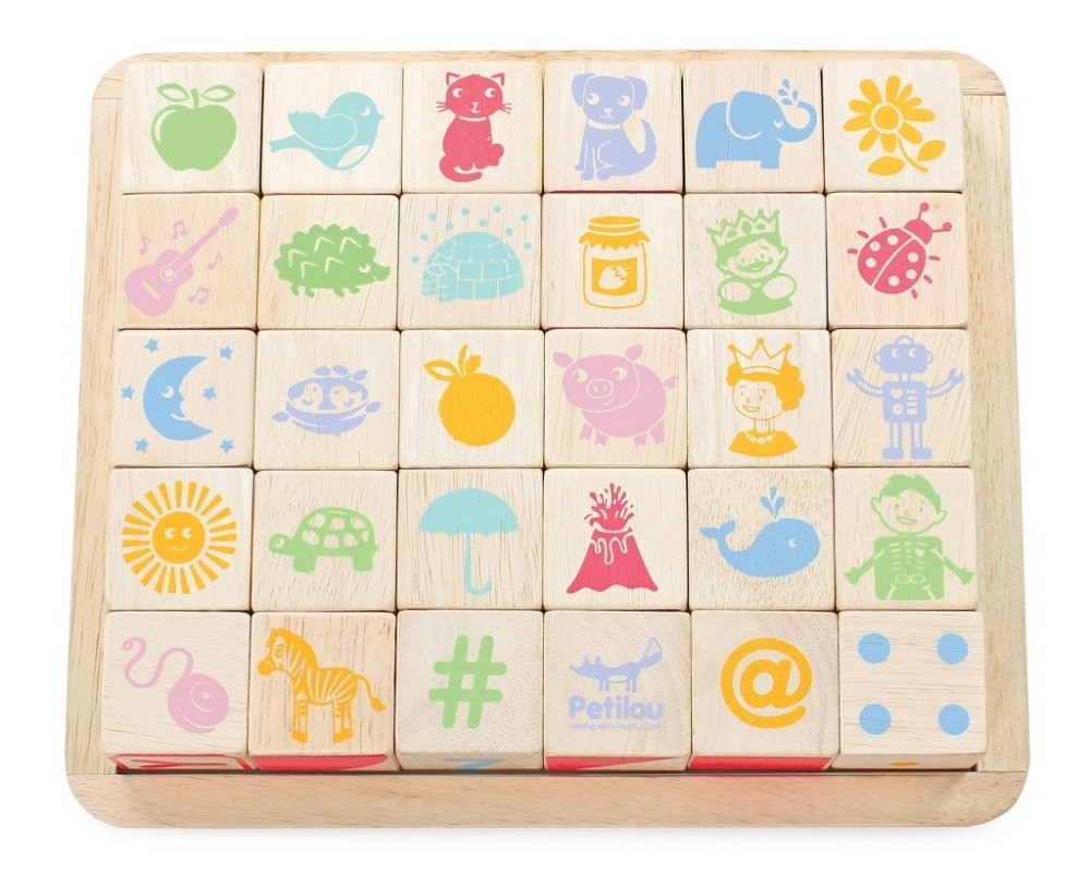 Naučte nejmenší děti abecedu zábavnou formou! Kostky jsou tradiční hmatovou hračkou, která rozvíjí zručnost, koordinaci ruka-oko, motoriku a prostorovou představivost. Každá z 30 kostek je ručně natištěna sítotiskem, každá je jedinečná. Kostky mají na každé ze stran jiný design – číslice, písmena, obrazce, zvířátka… Hračka je vyrobena z odolného kaučukového dřeva a malována barvami na bázi vody, které se neodlupují. Kostky i úložná deska mají zaoblené hrany, tato hračka bez obsahu plastu je tak bezpečná pro děti. Hračky s účelemVšechny hračky firmy Le Toy Van jsou vyrobeny s cílem – aby dlouho vydržely. Designovány s láskou zkušenými řemeslníky za použití etických praktik a udržitelných materiálů, které jsou laskavější k naší planetě. Hlavní vlastnosti: vyrobeno eticky z udržitelného dřevatestováno dle nejpřísnějších standardůmalováno netoxickými barvami na bázi vodyinspiruje k představivé hřerozvíjí kognitivní dovednostihračka bez obsahu plastu Ocenění hračky:Loved By Parents Best Buy Platinum Award 2018Early Years Five Star Excelence 2018Good Toy Guide Recommended Petilou kolekce: Kolekce pro nemluvňata a batolata od Le Toy Van obsahuje hlavně hmatové hračky, které mají nejmenším posloužit také jako učební prostředky. Kolekce je inspirována přírodou kolem nás a je navržena tak, aby rozvíjela smysly dětí pomocí rozdílných zvuků, textur, tvarů a hmotností. Děti tak od malička zapojí všechny své smysly. V kolekci najdete například skládačky, vkládačky, chodítka, … Značka a certifikát FSC® (Forest Stewardship Council) zaručuje, že dřevo, ze kterého byl produkt vyroben, nebylo vytěženo nelegálně a pochází z lesů obhospodařovaných šetrným či přírodě blízkým způsobem, ve kterém jsou dodržovány přísné environmentální a sociální požadavky. Značka FSC® na výrobku znamená, že svým nákupem pomáháte chránit lesy a podporujete šetrné, odpovědné či přírodě blízké hospodaření, díky kterému jsou naše lesy stabilnější, zdravější, mají přirozenou druhovou skladbu a lépe odolávají negativním následkům klimatických změn.