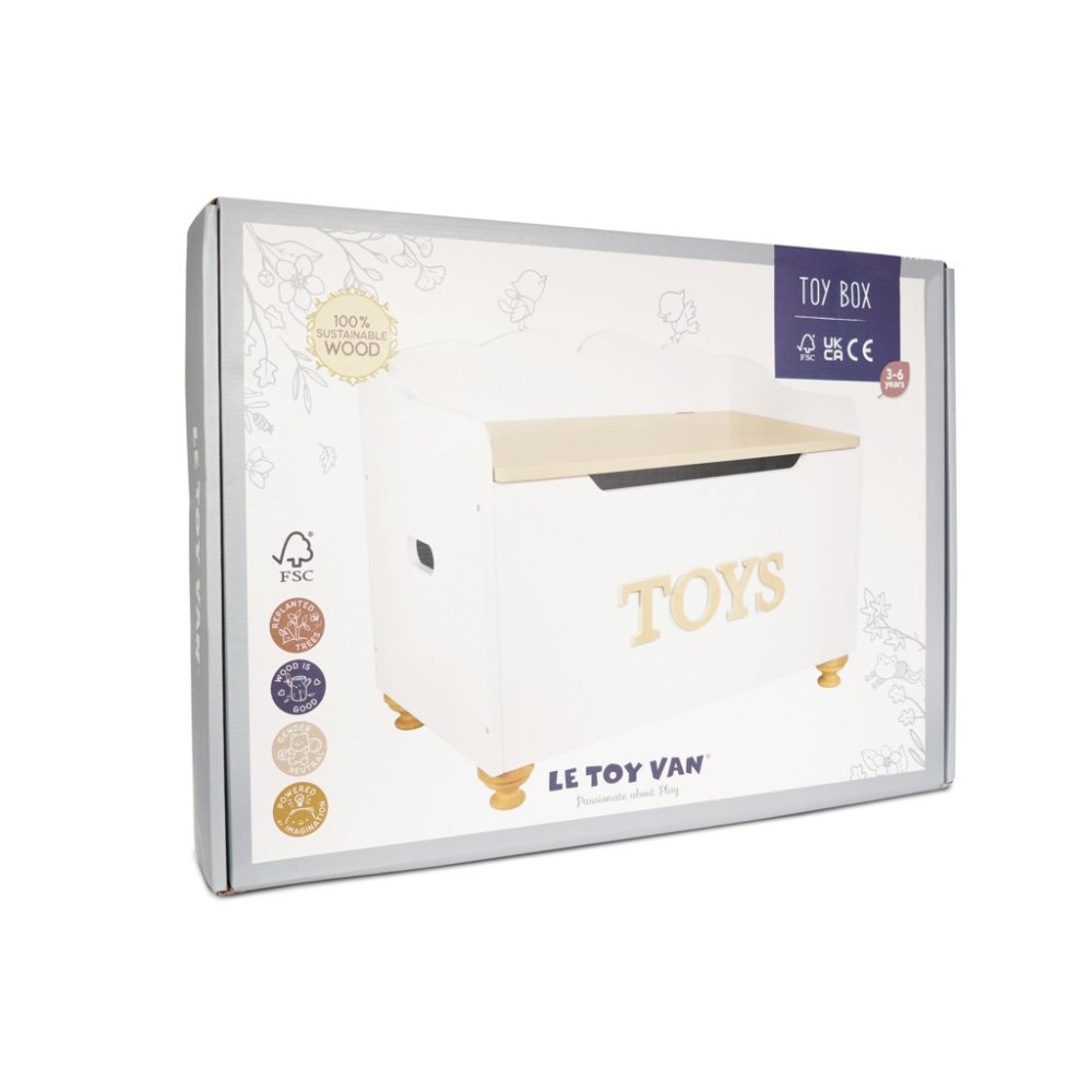 Okouzlující a ručně vyrobená dřevěná truhla na hračky, do které si děti mohou uložit všechny své hračky a poklady. Tento produkt je univerzální, využijete jej nejen jako elegantní úložný prostor, ale také jako lavici na sezení pro děti! Truhla má pomalu se zavírající panty, dřevěné nohy, reliéfní nápis. Neutrální design kombinuje klasickou bílou a přírodní dřevo. Krásný kus nábytku, který překoná i zkoušku času. Vyrobeno z udržitelného a odolného dřeva, vydrží vám opravdu dlouho. Hlavní vlastnosti: maximální nosnost 50 kgdřevěná truhlavyrobeno eticky z udržitelného FSC dřevamalováno netoxickými barvami na bázi vody Honeybake kolekce: Hračky v této kolekci jsou vhodné k objevování, pomohou dětem s rozvojem představivosti, sociálních a verbálních dovedností a kognitivních funkcí. Tradiční design s moderními detaily děti jistě bude bavit. Honeybake je kolekce Le Toy Van, která vyhrála nejvíce ocenění, a to za design, kvalitu, bezpečnost a také za vzdělávací a herní hodnotu. Značka a certifikát FSC® (Forest Stewardship Council) zaručuje, že dřevo, ze kterého byl produkt vyroben, nebylo vytěženo nelegálně a pochází z lesů obhospodařovaných šetrným či přírodě blízkým způsobem, ve kterém jsou dodržovány přísné environmentální a sociální požadavky. Značka FSC® na výrobku znamená, že svým nákupem pomáháte chránit lesy a podporujete šetrné, odpovědné či přírodě blízké hospodaření, díky kterému jsou naše lesy stabilnější, zdravější, mají přirozenou druhovou skladbu a lépe odolávají negativním následkům klimatických změn.