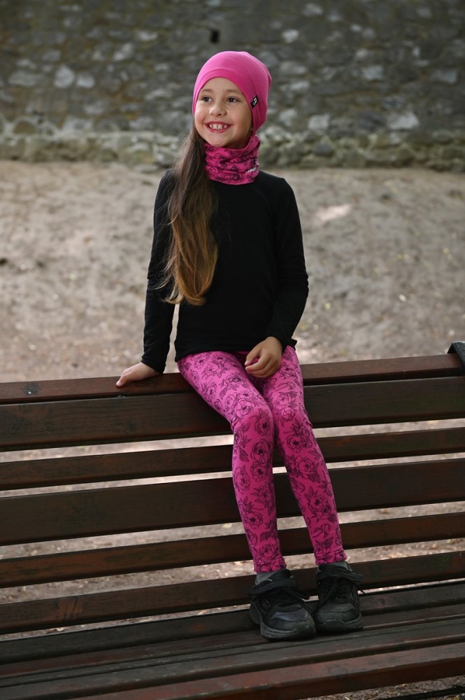 Legíny smyk TISK Outlast® – růžová pivoňky 134