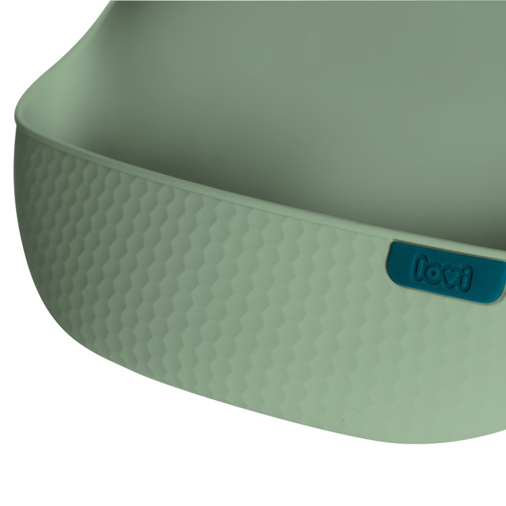 LOVI Silikonový bryndáček s kapsou je velkým pomocníkem pro rodiče – chrání před nečistotami v době, kdy se dítě učí samostatně jíst. Je vyroben z lehkého, měkkého a bezpečného silikonu. Pevná a hluboká kapsa zachycuje zbytky jídla, pohodlně obepíná bříško a zasahuje doširoka do boků miminka. Nastavitelná spona a ergonomický tvar bryndáku, zejména jeho tvarované strany, zajišťují volnost pohybu. Bryndáček má originální design díky unikátní struktuře kapsy a také se snadno čistí a je vhodný do myčky.Vlastnosti:- lehký a měkký- profilovaný tvar- pevná a hluboká kapsa- bezpečný silikon- snadné zapnout a rozepnout pomocí jedné ruky- lze srolovat- snadné čištěníPohodlný – Měkký, lehký silikon a profilovaný tvar zajišťují svobodu pohybu.Praktický – Tvrdá a hluboká kapsa na zachycování zbytků jídla, kapsa obepíná bříško a zasahuje doširoka po stranách dítěte.Rozdílná tloušťka a pevnost materiálu – Zesílený na kapse a v místě zapínání, zbytek bryndáku je tenčí, jemný pro dítě.Bezpečný silikon – Pro kontakt s potravinami.Ergonomický tvar – Přizpůsobený jakémukoli dětskému tělu, tvaru bříška a paží dítěte.Nastavitelné zapínání – Umožňuje přizpůsobit bryndáček dítěti na krk.Jednoduché skladování – Po sbalení zabere málo místa.Originální – Unikátní struktura na kapse.Možnost tvorby setu – Snadné kombinovat s LOVI nádobím.Vhodné pro děti od 6 měsíců.Produkt neobsahuje BPA.Pro bezpečí a zdraví vašeho dítěteVarování!Tento výrobek vždy používejte pod dohledem dospělé osoby.Před každým použitím výrobek zkontrolujte. Při prvních známkách poškození nebo opotřebení materiálu jej ihned vyhoďte.Vždy před krmením zkontrolujte teplotu pokrmu.Adresa výrobce: Canpol Sp. z o.o.02-884 Warszawa, ul. Puławska 430, PolskaSłubica B, ul. Graniczna 4,96-321 Żabia Wola, Polandtel. (+48 46) 858 00 00fax: (+48 46) 858 00 01babies@canpolbabies.comwww.canpolbabies.com
