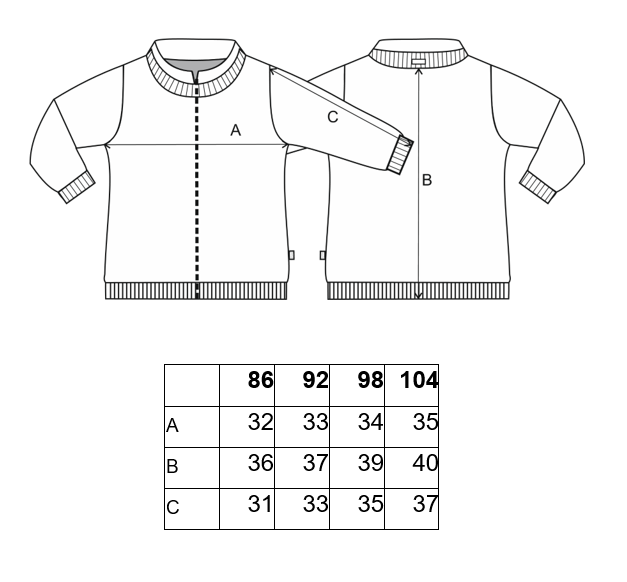 Rukávy mikiny jsou ukončeny širokými náplety, které můžete ohrnout a přizpůsobit délku rukávů aktuální velikosti dítěte. Tímto způsobem se mikina přizpůsobí více velikostem a dítě ji může nosit o to déle. Spodní část mikiny je opatřena lemem, který zaručí pohodlné nošení bez vykasávání zad.