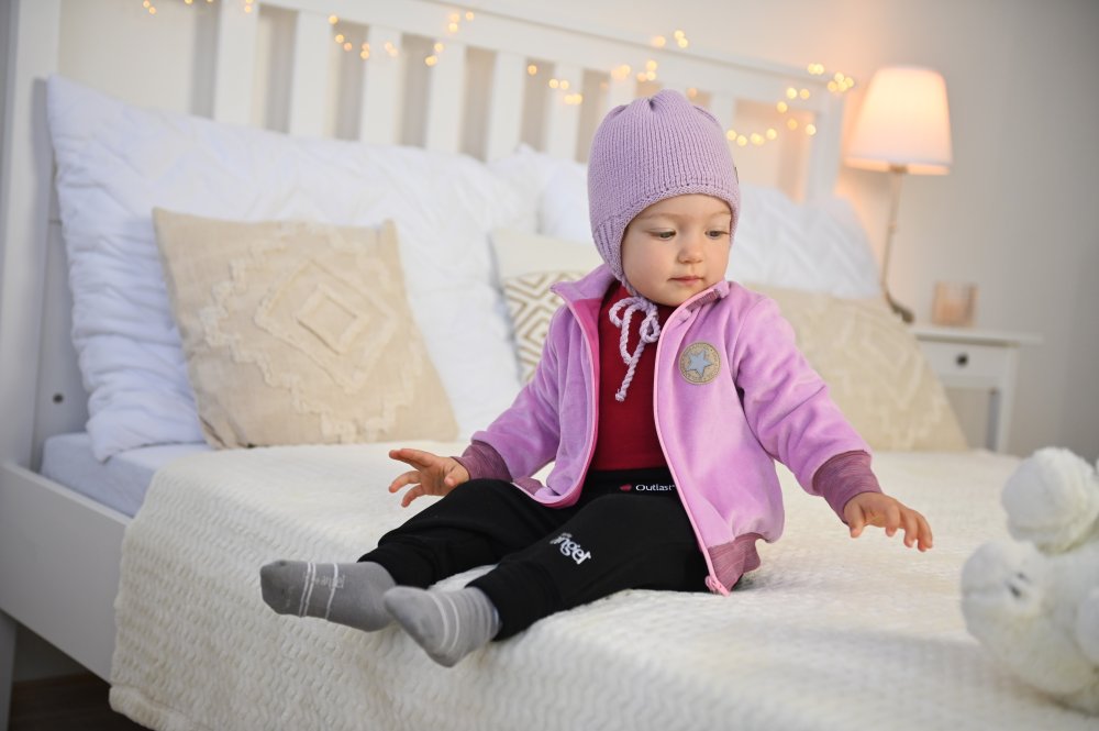 Mikina je svou chundelatostí ještě více roztomilá a dítě se bude cítit jako v kožíšku. Vnější strana mikiny je z bavlny a polyesteru, jednoznačně tak zaručí jemné, hřejívé, huňaté vlastnosti. Podšita je termoregulačním materiálem Outlast® s bavlnou, díky kterému bude mikina funkční a podpoří teplotní komfort za každé situace. Mikinku využijete do chladných měsíců, avšak i na suchý podzim místo bundy.
