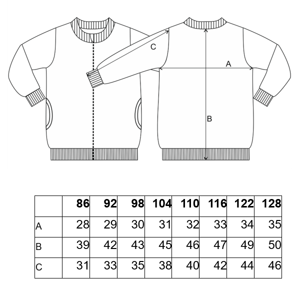 Pohodlná dětská podšitá mikina s kapsami je správnou volbou pro volný čas i na vycházky do města. Mikina má vepředu praktické zapínání na zip a u krku je zakončena slušivým stojáčkem. Po zapnutí můžete jezdec zipu schovat do speciální krytky a zabránit tak otlačení brady. Rukávy mikiny jsou ukončeny širokými náplety, které můžete ohrnout a přizpůsobit délku rukávů aktuální velikosti dítěte. Tímto způsobem se mikina přizpůsobí více velikostem a dítě ji může nosit o to déle. Náplet ukončuje mikinu a díky tomu poskytuje komfortní nošení, podpoří nevykasávání.