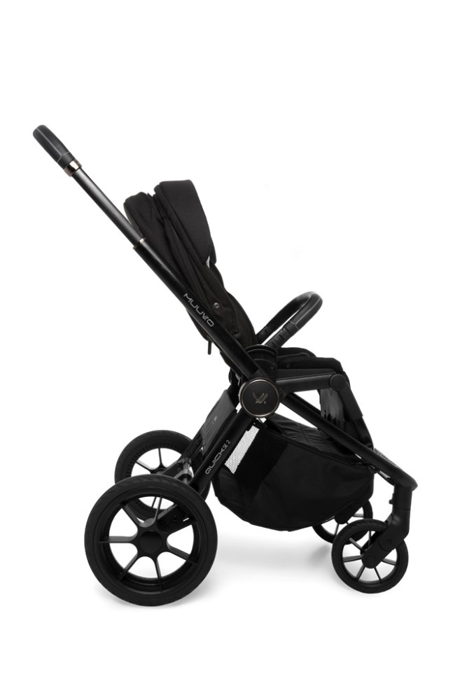 Quick SE 2 je nová edice nejprodávanějšího modelu MUUVO s ještě více vylepšeními a komfortními prvky v kombinaci s krásným designem, který navazuje na moderní trendy. Barevná řada má nový vzhled Chromium Black, kde je černá látka v kombinaci s černým lemováním z ekokůže a tmavými chromovanými dekorativními prvky.Kočárek Quick SE 2 je vybaven perforovanou opěrkou zad, která poskytuje adekvátní ventilaci, stejně jako systém nastavení výšky stříšky, díky kterému kočárek bude vozit i vyšší děti. 5-ti bodové popruhy jsou obohaceny o magnetickou přezku, která usnadní jejich rychlé upevnění. Prostorná korbička se systémem Memory Buttons, vestavěná moskytiéra a sluneční clona na zip, obojí lze namontovat přímo na rám a na přídavné výškové adaptéry.Při navrhování kočárků Muuvo nikdy nezapomínáme na pohodlí rodičů – kromě pohodlného skládacího systému, nastavitelné rukojeti a velkého, uzavřeného nákupního košíku, je Quick SE2 vybaven zbrusu novou prostornou taškou, kterou lze zavěsit na teleskopickou rukojeť pomocí přídavných nastavitelných popruhů.Součástí kočárků Muuvo jsou velká, gelová, bezúdržbová kola s odpružením, které zajišťují skvělé podmínky pro chůzi s kočárkem.Vlastnosti:- hlubokou korbu lze nasadit přímo na podvozek, vyšší rodiče ocení možnost nasazení korby na adaptéry zvyšující posazení korby na podvozku pro lepší manipulaci s miminkem- hlukobá korba je vybavena dvěma okénky pro lepší cirkulaci vzduchu v horkém počasí- prodloužitelná stříška s kšiltem pro ochranu dítěte v horkém i chladném počasí u hluboké i sportovní verze- stříška s filtrem UPF50+ je navíc voděodolná- propracovaný design – geometrická ražba na polstrování- děrovaná zádová opěrka kočárku v kombinaci s ventilačními prvky ve sportovné sedačce se bude skvěle hodit na letní procházky- polohování opěrky nohou i opěrky zad do několika poloh u sportovní sedačky- prodloužitelná opěrka nohou, která se snadlo čistí- stříška sportovní sedačky je vybavena síťkou pro lepší klima v horkých dnech- nastavitelná výška stříšky u sportovní sedačky, díky které kočárek roste spolu s dítětem- bezpečnostní pásy pro bezpečnou jízdu s dítětem navíc doplněné o magnetickou přezku- bezpečnostní madlo součástí- teleskopická rukojeť pro různou výšku obou rodičů- možnost nasazení sportovní sedačky v obou směrech jízdy- nepropíchnutelná gelová kola pro jízdy v rozmanitém terénu- přední kola s aretací- prostorný nákupní košík přístupný ze dvou stran- možnost snadného složení včetně sportovní sedačky- včetně popruhu pro nošení na rameniSoučást balení:- podvozek- sportovní sedačka- hluboká korba- nánožník- moskytiéra – sportovní i hluboká verze- pláštěnka – sportovní i hluboká verze- oboustranná vložka do sportovní sedačky- uchycení na tašku- přebalovací taška- sluneční clonaTechnické parametry:- rozměry rozloženého kočárku: 89-98 D x 58 Š x 96-105 V- rozměry složeného podvozku bez sedačky: 59 D x 58 Š x 33 V- hmotnost podvozku se sportovní verzí: 10,85 kg- vnitřní rozměry hluboké korby: 79,5 D X 35 Š- nosnost: 22 kgNa podvozek kočárku se vztahuje 5 let zárukaVarování: Postupujte podle pokynů výrobce. Sestava 2v1 je určena pro jedno dítě od 0 měsíců do 22 kg nebo 4 let, podle toho, co nastane dříve.Maximální zatížení košíku je 3 kg.Sportovní částNikdy nenechávejte dítě bez dozoru. Vždy používejte bezpečnostní pásy a správně je upevněte. Před použitím se ujistěte, že všechny části jsou správně zapnuty. Kočárek není určen k běhání ani jízdě na kolečkových bruslích. Ujistěte se, že vaše dítě je v bezpečné vzdálenosti při skládání a rozkládání kočárku, abyste předešli zraněním. Bezpečnostní brzda by měla být zapnuta při vkládání a vyjímání dítěte z kočárku. Nenechávejte dítě hrát si s tímto produktem.Před použitím zkontrolujte, zda je sedadlo správně nastaveno a zajištěno. Tento produkt je určen k používání od narození, s doporučenou polohou pololežící pro novorozence. Nepoužívejte žádná zatížení na rukojeť nebo zadní část sedadla, která nejsou doporučena výrobcem. Používejte pouze náhradní díly dodané nebo doporučené výrobcem/distributorem. Vždy, když parkujete kočárek, používejte bezpečnostní brzdu. Nepoužívejte tento produkt, pokud některá část chybí nebo je-li některá část poškozena.Před použitím se ujistěte, že všechny pohyblivé části jsou zajištěny. Sedadlo lze namontovat pouze přímo na rám. Montáž na zvýšené adaptéry může způsobit nestabilitu nebo uvolnění sedadla z rámu. Sedadlo není vhodné pro děti mladší 6 měsíců.KorbaTento produkt je určen pro jedno dítě. Nepoužívejte korbu, když dítě začne samostatně stát, sedět nebo se zvedat na rukou a kolenou. Maximální hmotnost dítěte: 9 kg. Nikdy nedávejte do korby dodatečnou matraci. Korba je určena na rám kočárku, který je součástí setu. Používejte pouze na tvrdé, rovné a suché ploše. Nepovolte dětem hrát si v blízkosti korbičky. Nepoužívejte tento produkt, pokud některá část chybí nebo je-li některá část poškozena. Nikdy nenechávejte dítě bez dozoru. Používejte pouze náhradní díly, které jsou doporučeny nebo dodány vý