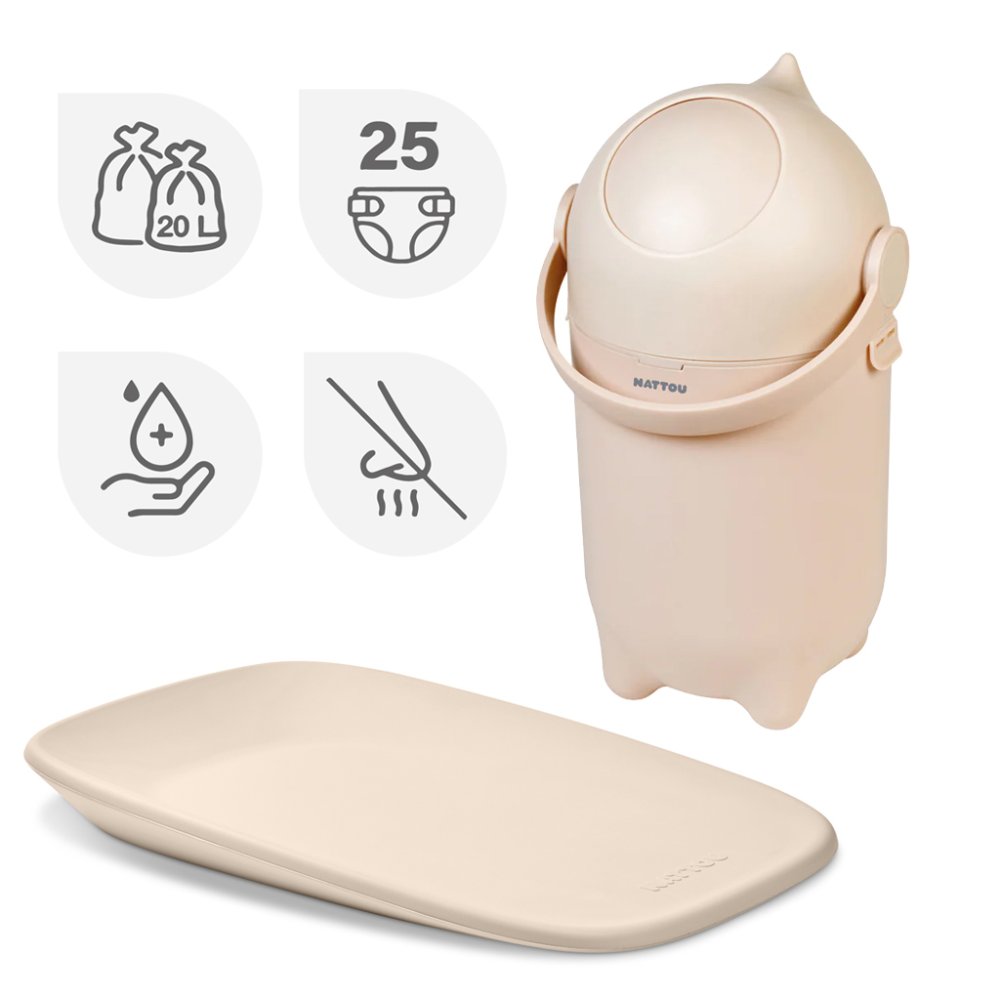 Původní cena byla: 528 Kč.369 KčAktuální cena je: 369 Kč.NATTOU Koš na pleny Dropy a přebalovací podložka Softy Beige 50×70 cm