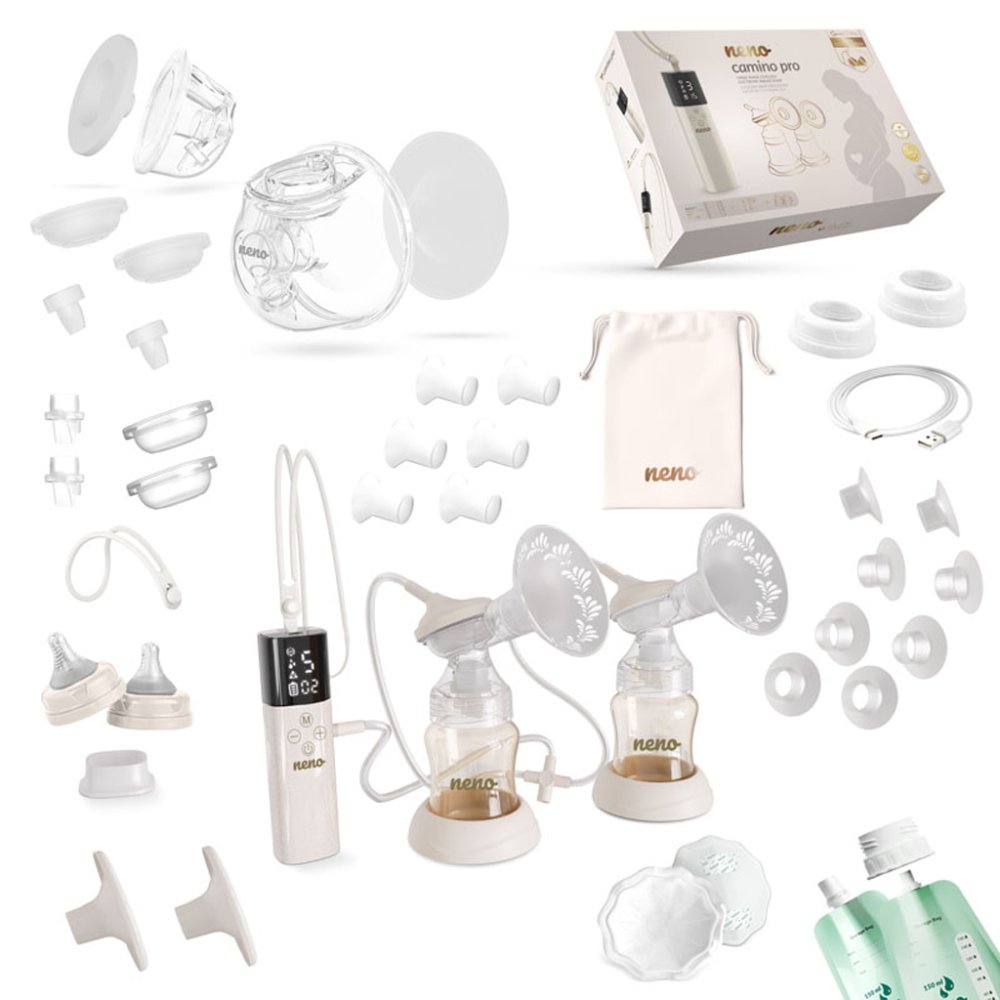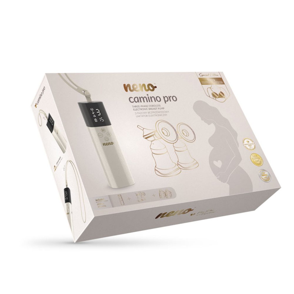 Neno Camino Pro je třífázová bezkabelová elektronická odsávačka mateřského mléka ze série Freedom. Přináší svobodu a pohodlí novým maminkám, které musí sloučit péči o miminko, domácnost, práci a vlastní pohodu.Vlastnosti:- Dvojitý způsob odsávání – současně odsává mléko z obou prsou, čímž šetří čas a zvyšuje efektivitu- Třífázový systém odsávání – napodobuje přirozený rytmus sání dítěte: nejprve stimulace, poté hluboké odsávání a nakonec jejich kombinace pro podporu laktace i při nižší tvorbě mléka- Praktický časovač – měří dobu odsávání bez potřeby telefonu či hodin, s možností pozastavení a obnovení- Anatomické prsní štíty – měkké, pružné, ergonomicky tvarované, dokonale přiléhají bez tlaku či nepohodlí- Nádoby na sběr mléka – velké (240 ml), vhodné do standardních kojících podprsenek pro diskrétní odsávání bez použití rukou- Uzavřený systém – zabraňuje zpětnému toku mléka do hadiček a kontaminaci, čímž chrání mléko před nečistotami a bakteriemi- Sada se 7 velikostmi redukcí prsních štítů – čtyři pro lahve (15, 17, 19, 22 mm) a tři pro sběrné nádoby (17, 19, 21 mm) pro maximální komfort a účinnost- Dotykové ovládání – snadné nastavení režimů a sacích úrovní jednou rukou přes přehledný panel- USB-C nabíjení – univerzální kabel vhodný na cestách bez potřeby adaptéru- Lehký a kompaktní design – snadno se vejde do kabelky, batohu nebo zásuvky, bezkabelové provedení umožňuje odsávání kdekoli- Silikonové díly – měkké, jemné, bez podráždění, odolné a snadno čistitelné- Ochranné krytky – chrání prsní štíty před prachem a nečistotami- Dvě praktické šňůrky na nošení – kratší (15 cm) pro stabilitu a delší (42 cm) pro větší volnost polohy- Jednoduchá sterilizace – všechny části přicházející do kontaktu s mlékem lze sterilizovat ve sterilizátorech nebo vroucí vodou- Jednoduchý přesun mléka – bezpečný a bez rozlití ze sběrných nádob do lahvíObsah balení:- Odsavač Neno Camino Pro- Stojan na zařízení- USB-C nabíjecí kabel- Sametové pouzdro na uskladnění- 2× sáčky na mateřské mléko- 2× kojící vložky- 2× šňůrky na nošení (dlouhá a krátká)Sada na lahvové odsávání:- 2× láhev na mléko (150 ml)- 2× kryt prsního štítu- 2× prsní štít (24 mm)- 2× stojánek na láhev- Silikonová hadička- 4× membrána- 4× ventil- 2× konektor na láhev- 2× sada redukcí prsního štítu (15, 17, 19, 22 mm)- 2× uzávěry lahví s konektorySada na hands-free sběr:- 2× sběrná nádoba (240 ml)- 2× konektory- 2× kryty membrán- 4× membrány- 2× prsní štíty (24 mm)- 4× ventily- 2× kryty prsních štítů- 2× sada redukcí prsních štítů (17, 19, 21 mm)Technické parametry:- Model: Camino Pro- Provozní režimy:– Stimulace: 5 úrovní (L1-L5)– Hluboké odsávání: 9 úrovní (L1-L9)– Kombinovaný režim: 5 úrovní (L1-L5)- Baterie: Li-Ion 3,7 V / 1400 mAh- Doba nabíjení: cca 2 hodiny- Výdrž baterie: až 120 minut- Napájení: 5 V / 1 A- Nabíjecí port: USB-C- Délka šňůrky na nošení: dlouhá 42 cm, krátká 15 cm- Rozměry pumpy: 151 × 42 × 36 mm- Hmotnost pumpy: 442 g- Hmotnost balení: 2,48 kgRozměry balení: 30,8 × 43,6 × 10,3 cmDůležité: Během těhotenství se odsávačka mléka nesmí používat, protože by mohla vyvolat předčasný porod. Zařízení také není vhodné k používání, pokud trpíte chronickým onemocněním nebo zvýšenou citlivostí, která by způsobovala bolest při odsávání. Před každým použitím pečlivě zkontrolujte všechny součásti zařízení. Pokud zpozorujete jakékoli poškození komponent, odsávačku nepoužívejte. Uchovávejte přístroj mimo dosah dětí a domácích zvířat, aby nedošlo k jeho poškození nebo úrazu. Zařízení chraňte před mechanickým poškozením, například před pádem. Silikonové části neumisťujte v blízkosti horkých povrchů, protože by se mohly zdeformovat. Pokud plánujete uchovávat odsáté mléko, vždy předtím důkladně vyčistěte a vydezinfikujte všechny části odsávačky, které přicházejí do kontaktu s mlékem. Při čištění se vyhýbejte používání abrazivních prostředků. Zařízení se nesnažte opravovat sami, protože tím ztratíte nárok na záruku. Pokud během používání pocítíte bolest nebo výrazné nepohodlí, přístroj okamžitě vypněte a odstraňte jej od prsu. Nabíjecí zařízení nikdy nepřipojujte k vyššímu napětí, než je uvedeno v technických specifikacích.Adresa výrobce: KGK Trend sp. z o.o., ul. Ujastek 5b, 31–752 Kraków, Polsko. info@kgktrend.pl, NIP 678 315 51 46