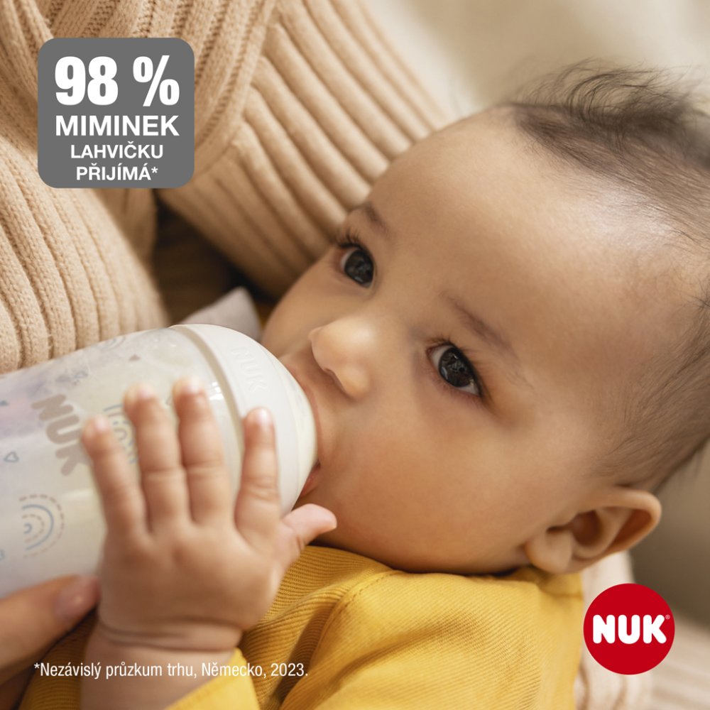 Savička NUK Perfect Match, vyrobená z měkkého silikonu, neobsahuje BPA, velikost M, od 3 měsíců, 2 kusyVlastnosti:- Obzvláště flexibilní a měkká savička se přizpůsobí miminku. Přijímána 98 % miminek- Velikost M (od 3 měsíců, pro kojenecké mléko).- Velká, široká opora rtů miminku při pití připomíná pokožku matčina prsu.- Hladce se zužující tvar s antikolikovou funkcí pro plynulý a nerušený průtok pití.- Lze kombinovat s veškerým příslušenstvím odsávaček mateřského mléka NUK Perfect Match a NUK Soft&Easy.Důležité: Kojení je to nejlepší pro kojence. Při přípravě mléčné výživy nebo čaje vždy dodržujte pokyny výrobce dětské výživy. Aby zůstaly zachovány vitamíny a živiny, neměla by teplota překročit 60 °C. Výživu a nápoje podávejte pouze v konzistenci a množství doporučeném výrobcem. Od 5. měsíce života postupně přecházejte na hrneček. Pro bezpečnost a zdraví Vašeho dítěteUPOZORNĚNÍ!- Neustálé a dlouhodobé sání tekutin způsobuje zubní kaz. K poškození zubní substance může u malých dětí dojít také tehdy, pokud konzumují tekutiny bez cukru. Před krmením vždy zkontrolujte teplotu jídla. Při prvním náznaku poškození nebo opotřebení výrobek vyhoďte Nepoužívané součásti výrobku uchovávejte mimo dosah dětí. Nikdy nespojujte se šňůrami, stuhami, tkaničkami nebo s volnými částmi oblečení, mohlo by dojít k uškrcení dítěte. Používejte tento výrobek vždy pod dohledem dospělých. Nikdy nepoužívejte dudlík na krmení jako běžný dudlík. Skleněné láhve se mohou rozbít.Upozornění k použití:Před prvním použitím rozložte výrobek na jednotlivé díly, tyto vyčistěte a na 5 minut umístěte do vroucí vody. Slouží to hygienickým účelům. Před každým dalším použitím pečlivě vyčistěte. V případě potřeby sterilizujte.Uchovávejte v suchu a hygienicky. Při čištění používejte mycí prostředek NUK nebo jemný prostředek pro ruční mytí a zbytky potravin odstraňte také ze skrytých oblastí. Jeli zapotřebí, výrobek namočte, v žádném případě neškrábejte vnitřek láhve. Důkladně propláchněte. Savičky a láhve nepatří do myčky – hrozí poškození materiálu působením čisticích prostředků pro myčky! Některé potraviny mohou způsobit zabarvení materiálu (např. mrkvová šťáva) nebo způsobit zápach (např. fenyklový čaj). To neomezuje vhodnostpoužití. Pokud láhev vykazuje na vnitřní straně poškození (např. škrábance), musí být z hygienických důvodů vyměněna. Při vyvařování nebo napařování láhev vždy rozložte na jednotlivé díly a nechte otevřené, protože jinak může dojít k jejich deformacím.Při napařování doporučujeme parní sterilizátor NUK nebo NUK parní sterilizátor do mikrovlnných trub. K zabránění poškození materiálu vždy dodržujte návod k použití sterilizátoru. Při dezinfekci plastovýchlahví nesmí být překročena maximální teplota 100°C (pokyn na lahvi)! Barvy měnící se podle teploty jsou citlivé na vlhké teplo a odvápňovací prostředky. Při častém vaporizování nebo vyvařování dochází k vyblednutí barev.Pro savičku na krmení: Před každým použitím zkontrolujte savičku na krmení a roztáhněte ji do všech směrů. Při prvních známkách poškození nebo slabých míst zlikvidujte. Před každým použitím zkontrolujte mírným roztažením průchodnost odvzdušňovacího ventilu a otvoru na pití. Neponořujte do léčiv! Savičku na krmení nebo lahev nikdy nevystavujte přímému slunečnímu záření nebo teplu nebo ji nenechávejte déle než je uvedeno v desinfekčním prostředku (sterilizační roztok), může to snížit pevnost savičky nebo poškodit materiál. Savičku z hygienických a bezpečnostních důvodůvyměňujte každé 1 až 2 měsíce. Pro LATEXOVÉ savičky: Vyrobeny z přírodního kaučukového latexu.Pro skleněné láhve: K promíchání v láhvi nepoužívejte kovové lžíce, protože přitom mohou vzniknout vlasové trhliny, které mohou později vyvolat prasknutí. Při vyšroubování / zašroubování lahve nikdy nepoužívejte násilí. Lahev při minimálních známkáchpoškození jako jsou trhlinky atd. vyměňte. Lahve vždy ohřívejte otevřené (nebezpečí výbuchu) a ochlaďte (deformace)! Při ohřívání v mikrovlnné troubě je důležitá opatrnost;může dojít k místnímu přehřátí. Ohřáté potraviny se musí vždy promíchat a před krmením se musí zkontrolovat teplota.Výrobce: MAPA GmbH, Industriestraße 21 -25, 27404 Zeven, Německo. Spontexcz@newellco.com , info@nuk.cz, www.nuk.com.