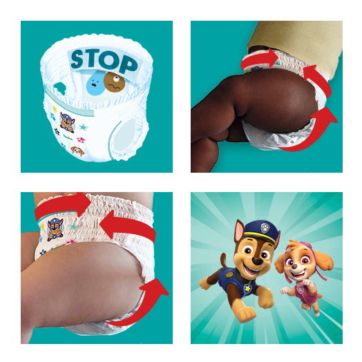 Díky komfortní ochraně 360° Fit chrání před protečením. Plenkové kalhotky z limitované edice Paw Patrol s obrázky oblíbených postav tlapkové patroly Kromě komfortní ochrany 360° Fit mají naše plenkové kalhotky Paw Patrol také revoluční kapsu Stop & Protect, která pomáhá předcházet protečení vzadu. Bezpečnost děťátka je pro Vás prioritou. My se řídíme stejnou zásadou.Upozornění: Udržujte obaly mimo dosah dětí, aby se předešlo nebezpečí udušení / uškrcení.Adresa dodavatele: Procter & Gamble 65823 Schwalbach/Ts., Germany, www.pg.com, https://us.pg.com/contact-us/
