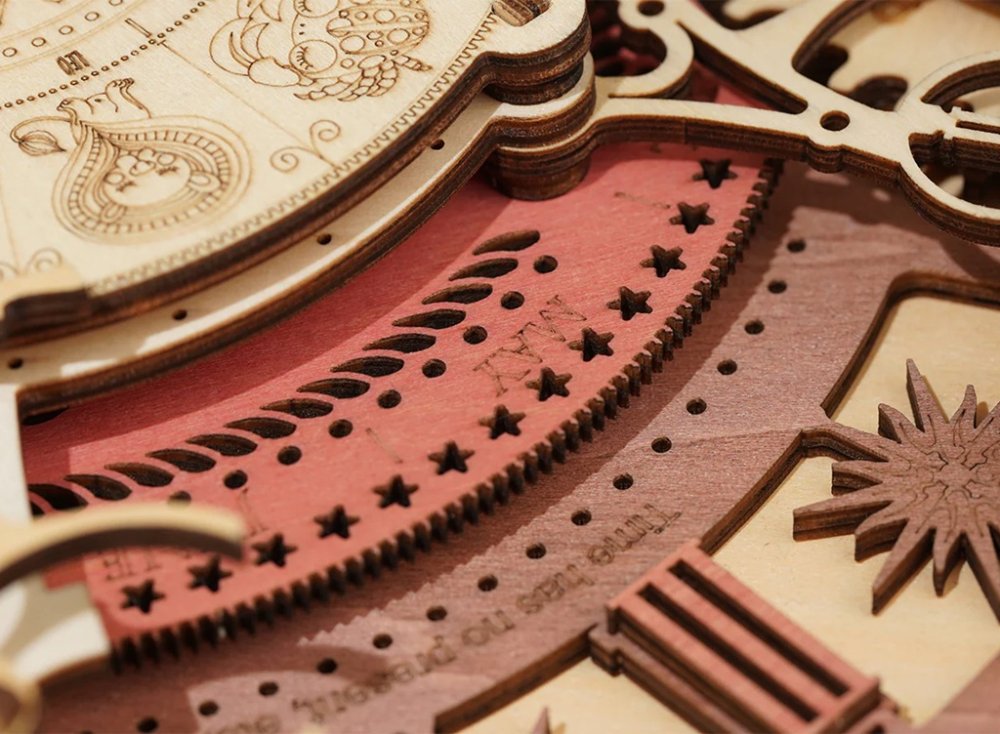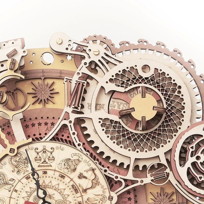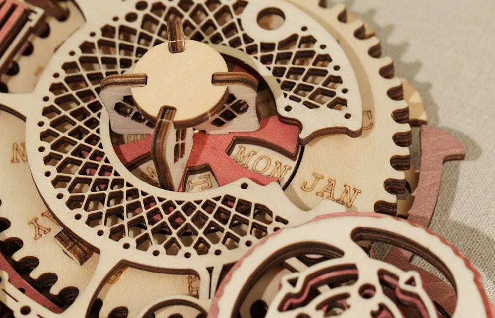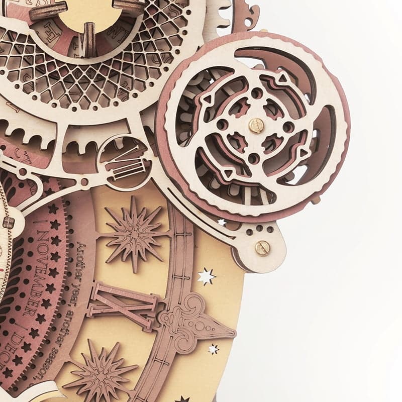 Ztrácíte se v čase? Stavebnice hodin s dekoračním kalendářem z překližky. Inspirováno klasickým filmem Stroj času, navrženo tak, aby detaily přitáhly pozornost všech nadšenců. Hodiny jsou poháněny elektricky, pomocí tužkové baterie. Kalendář slouží jako dekorace zobrazující měsíce a dny. Je obsluhován pomocí čtveřice otočných ovladačů u jednotlivých ukazatelů. Model je určen k zavěšení na zeď a dodává se s dvojicí různých závěsných háčků, s hřebíkem a s přísavkou. Jedinečný dárek pro všechny milovníky kutilství, luxusní interiérová dekorace do pokoje či kanceláře. Skládačka je dodávána v nesloženém stavu, balena v krabici. Vybaveno detailním návodem k sestavení. Hlavní vlastnosti:168 precizně vyřezaných dílkůvysoká obtížnost sestavenínapájeno AA bateriídekorační kalendář zobrazuje:měsíc v roceden v měsíciden v týdnu