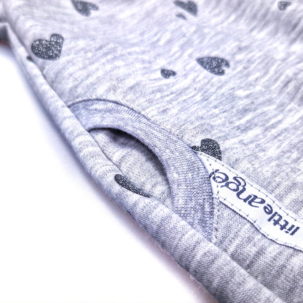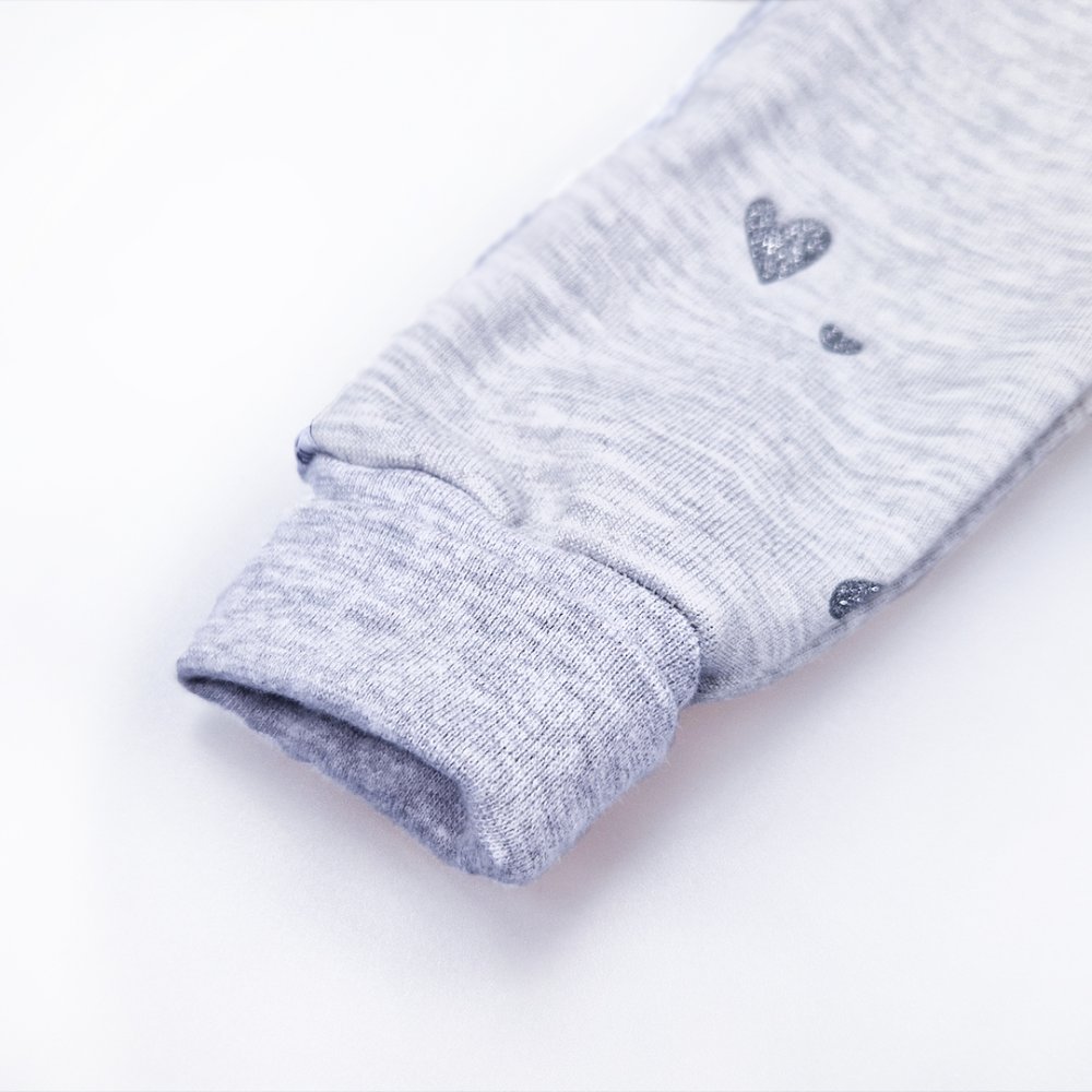 Díky kapuci a kapsám působí ležérně. Moderní módní kousek je obohacen o motiv lesklých srdíček, které dodají šatům šmrnc. Podšitá kapuce je doplněna o saténovou šňůrku.