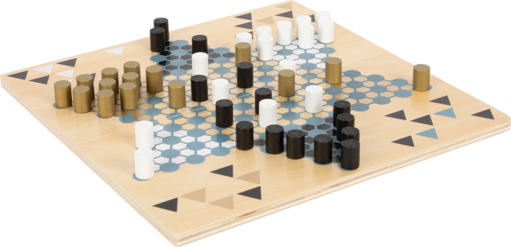 Dvě klasické strategické hry ze dřeva v moderním, "dospělém" motivu se sofistikovanými zlatými detaily v kombinaci s kouřovou modrou, také černou, bílou a přírodním dřevem. Oboustranná hrací deska pro více zábavy! Na jedné straně halma, na druhé barikády/malefiz. Hrací deska má dvě části, které drží pohromadě za pomocí magnetů. Zajímavý vzhled, materiál příjemný na dotek. Hra je zabalena v odolném a kvalitním lepenkovém boxu, díky kterého můžete hru jednoduše uskladnit. Podporuje rozvoj strategického myšlení a soustředěnosti. Skvěle se hodí k ostatním hrám ze série "Gold Edition". Hra vypadá pěkně i jako dekorace. Hlavní vlastnosti: Dřevěná rodinná hra Rozvíjí strategické myšlení a soustředěnostKrásná barevná kombinace a viditelné dřevo