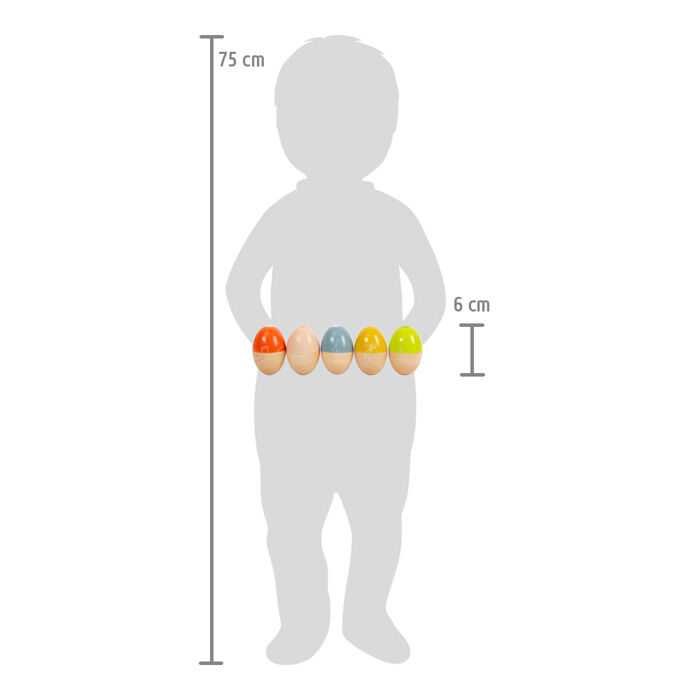 Třeste, chřestěte a válejte! Vytvořte tak báječné zvuky a něco příjemného pro vaše uši! Každé z pěti chrastících vajíček vyrobených z robustního masivního dřeva vydává jiný zvuk a nabízí všechny druhy rytmické zábavy. Vajíčka mají krásný tvar a dětská ručička je snadno uchopí. Díky kombinaci přírodního dřeva a moderních kontrastních barev jsou tato hudební vajíčka také vizuálními poutači! Absolutní hit pro milovníky zvuku! Hudební chrastící vajíčka trénují akustické vnímání i smysl pro rytmus a také rytmiku a koordinaci ruka-oko. Ideální pro ranou hudební výchovu! Hlavní vlastnosti: Rozvíjí jemnou motoriku a kreativituHravý úvod do světa zvuku a rytmuKaždé hudební vejce vydává jiný zvuk