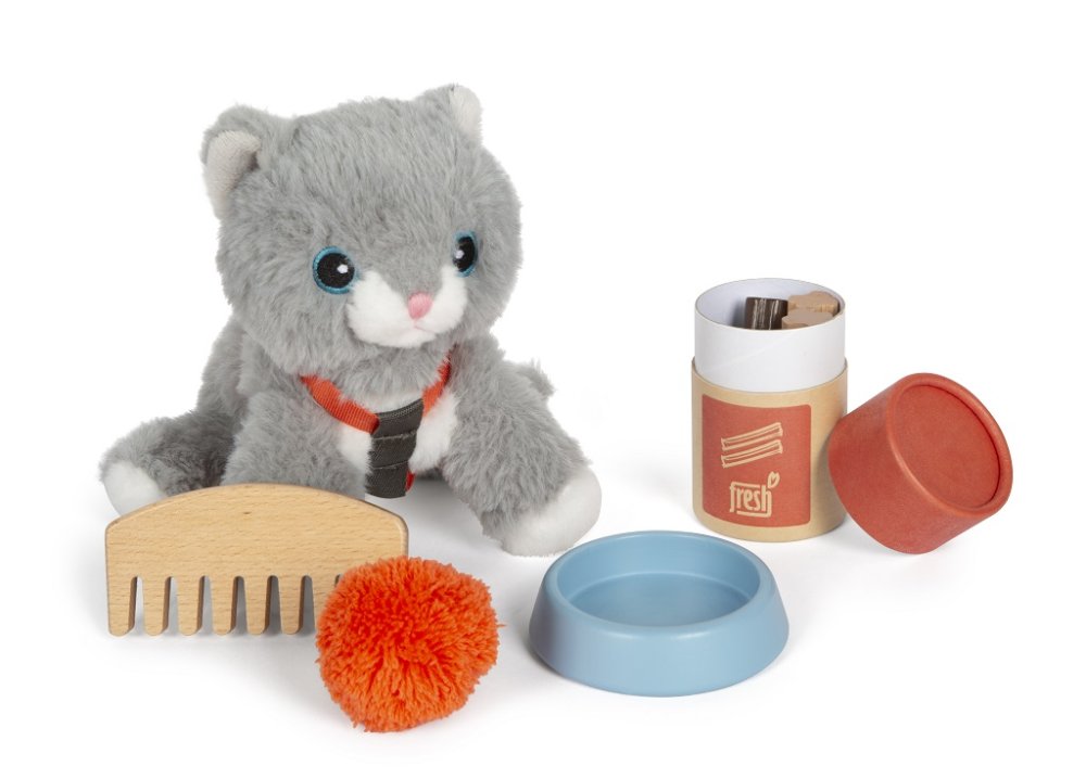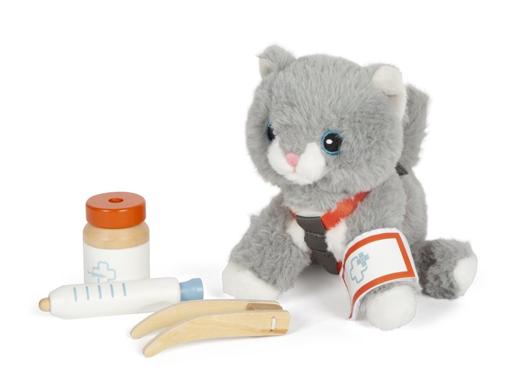 Plyšová kamarádka, která má v sadě vše, co potřebujete, abyste o ní mohli pečovat. Nastěhujte si koťátko do svého pokojíčku anebo si ho vezměte s sebou na cesty. Díky praktické přepravní tašce už svého mazlíčka nikdy nebudete chtít nechat doma. Sada obsahuje přepravní tašku s podložkou, kočičku s postrojem a příslušenstvím pro její pohodlí. Co kdyby na cestách onemocněla, poranila si tlapku nebo měla klíště? Nebojte se! Tato sada obsahuje vše, co je potřeba. S ní máte jedinečnou příležitost předvádět realistické veterinární situace. Krmení, péče, hraní, léčení – tato plyšová kočka s pečovatelskou sadou nabízí spoustu různých herních scénářů a povzbuzuje k aktivnímu hraní rolí.Hlavní vlastnosti: realistické zvířátkoplyšová hračka s postrojemsada obsahuje plyšovou kočičku, přepravní tašku s podložkou, misku, dózu na pamlsky, pinzetu, obvaz, krabičku na léky, hračku, kartáč a injekční stříkačku s pružinovým mechanismemtrénuje sociální a emocionální dovednosti