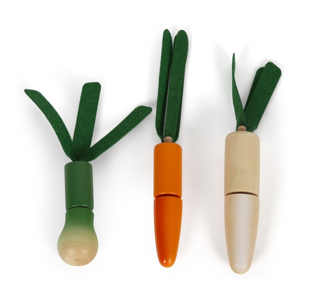 Tato velká sada potravin v praktické bedýnce je nejen nezbytným doplňkem každé kuchyňky, ale také naučí děti rozpoznat základní druhy ovoce a zeleniny a dalších potravin. Pro výrobu bylo použito robustní dřevo a vše je realisticky zpracováno. Potraviny jsou spojeny suchým zipem a děti je mohou snadno „rozkrojit“ pomocí přiloženého nože. Sada obsahuje dřevěný nůž, rajče, okurek, mrkev, jablko, banán, hříbek, papriku, cibuli, pórek, pomeranč, meloun, hrušku, ředkev (pastinák). Opakovaně použitelný obal učí děti zábavnou formou odpovědnosti k životnímu prostředí – omezit odpadky a plýtvání, znovu věci použít, recyklovat. Hlavní vlastnosti: vhodné do dětské kuchyňkydíky suchým zipům lze potraviny „nakrájet“učí děti odpovědnosti k životnímu prostředípodporuje kreativní a nápadité hraní