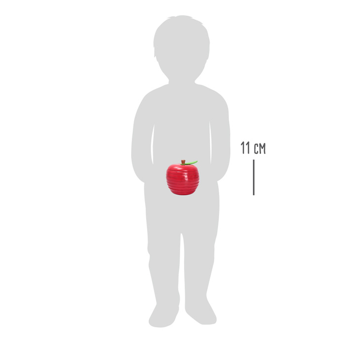 Dřevěná, 9 dílná skládačka jablka zdobeného plstěným lístkem, v jasných barvách. Procvičujte jemnou motoriku, koordinaci zraku a rukou i prostorovou představivost, aniž byste ubírali na zábavě. Každý červík vykukující ze základního dílu má jinou výšku, skládejte jablko po vrstvách tak, aby počet děr ve vrstvě odpovídal počtu právě vykukujících červíků. Sestavené jablko je ozdobou každé police. Hlavní vlastnosti: 9 dílůvhodné i jako dekoracerobustní a odolné provedení