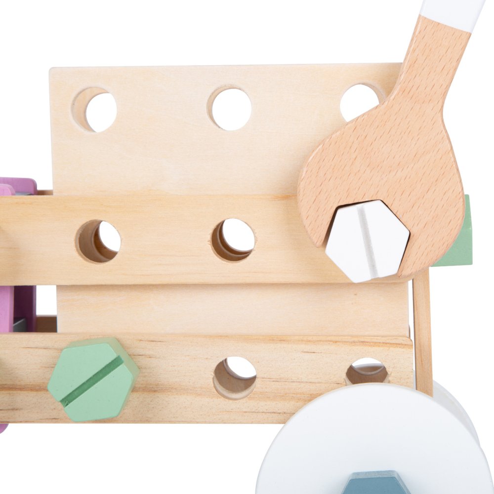 Video je pouze ilustrační, zobrazuje příbuzný produkt. Stavění a kutilství v nordickém stylu! Destičky s vyvrtanými otvory, matkami, šrouby a další doplňky, s kterými si mohou mladí stavební inženýři a inženýrky opravdu vyhrát. Za pomoci klíče a šroubováku mohou všechny součástky složit nebo rozložit. Ať už je to traktor, lokomotiva nebo jeřáb, představivosti se meze nekladou. S dokončenými modely si děti mohou hrát. Kreativní hračka, která je perfektní pro mladé stavitele. Dřevěný set, pomocí kterého může každé dítě změnit své představy v realitu. V balení najdete klíč, šroubovák, dřevěné perforované pásky různých tvarů a velikostí, šroubky a matky… Viditelně dřevěný materiál v přírodní barvě i v pastelovém provedení. Kompatibilní s produkty ze série Miniwob. Hlavní vlastnosti 67 dílkůPlně dřevěnéNordický design