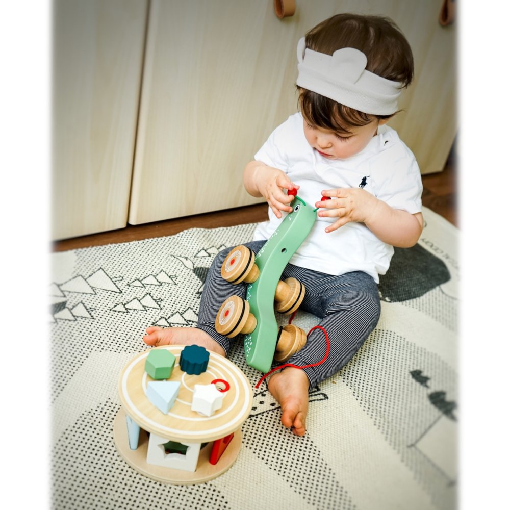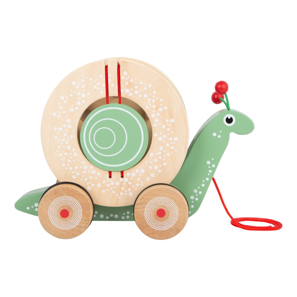 Tato dřevěná tahací hračka s přátelskýma očima, mnoha detaily a pogumovanými kolečky inspiruje děti k prvním krůčkům. Při tahání se šnekova ulita otáčí a dílky uvnitř vydávají zvuk. Dílky můžete pomocí jejich provázků také připevnit na stranu ulity. Hračka je mixem přírodního a barveného dřeva v moderních barvách. Šnekova ulita je oddělitelná a funguje jako vkládačka. Na straně ulity jsou oddělitelná dvířka, kterými můžete dílky z vkládačky opět vyndat. Můžete je také skladovat připevněné na ulitu, aby nevydávaly zvuk. Chytrá motorická hračka perfektní pro děti. Hlavní vlastnosti Tahací motorická a edukativní hračka v jednomOddělitelná ulita může být použita jako vkládačkaPři hře trénuje motoriku dětí různými způsobyPři hře stimuluje sluchový vjem dětíUlita má postranní dvířka, kterými lze jednoduše vyjmout vložené dílkyPogumovaná kolečka zajišťují tichý chod