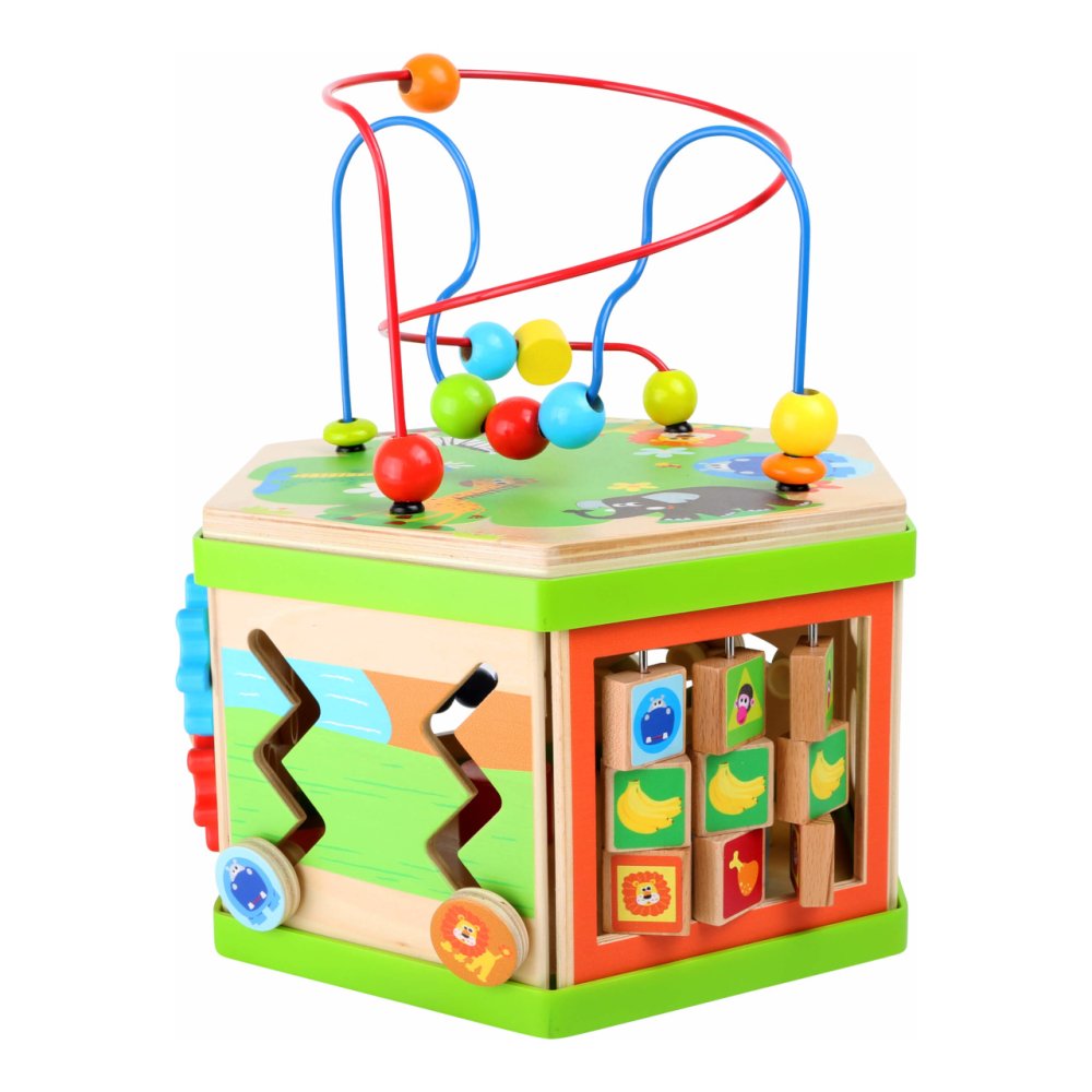 Představujeme Small Foot Velká motorická kostka safari – revoluci v dětské zábavě a vzdělávání! S touto robustní dřevěnou kostkou, ozdobenou roztomilými safari zvířátky, otevíráte dveře do světa plného objevů, kde každá hratelná plocha je novým dobrodružstvím. Představte si, že vaše dítě objevuje radost z učení, zatímco jeho prstíky se snaží ovládnout posuvné pravítko nebo se směje, když skluzavka dopraví zvířátko do cíle. Sedm interaktivních ploch Small Foot Velké motorické kostky safari je navrženo tak, aby podněcovalo zvědavost a touhu poznávat. Od posilování jemné motoriky až po koordinaci oko-ruka, tato kostka je víc než hračka – je to brána k nekonečnému objevování. Není to jen o hře. Small Foot Velká motorická kostka safari je také designový skvost, který se pyšní výrobou v Německu, zaručující kvalitu a bezpečnost, které si váš malý průzkumník zaslouží. Vnitřní úložný prostor kostky slouží jako tajná komora pro zásuvné prvky, udržuje pořádek a zároveň podněcuje dětskou fantazii. A s potiskem atraktivních zvířecích ilustrací se stane i okouzlujícím doplňkem každé dětského pokoje. Přidejte do života vašeho dítěte rozměr kreativity a učení, který bude posilovat jeho dovednosti každý den. Hlavní vlastnosti: veselý barevný safari designmultifunkční aktivity motorická kostka na 7 hratelných plocháchrozvíjí jemnou motoriku, koordinaci oko-ruka a soustředěníinteriér nabízí úložný prostor pro zásuvné prvkyvhodné od 12 měsíců