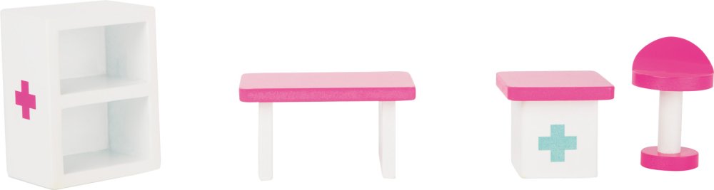 Čí nemocná tlapka je na řadě? Zažijte spoustu zábavy a podpořte fantazii svých dětí. Dřevěná veterinární klinika s dvěmi postavičkami, králíčkem a dalším příslušenstvím si jistě najde své místo v každém dětském pokojíčku. Praktické jsou rozměry a skladnost hracího domečku. Vhodné pro panenky do 12 cm. Hlavní vlastnosti: podporuje představivost, fantaziiprodukt ze dřeva a textilutéma veterinární klinikypro děti od 3 let