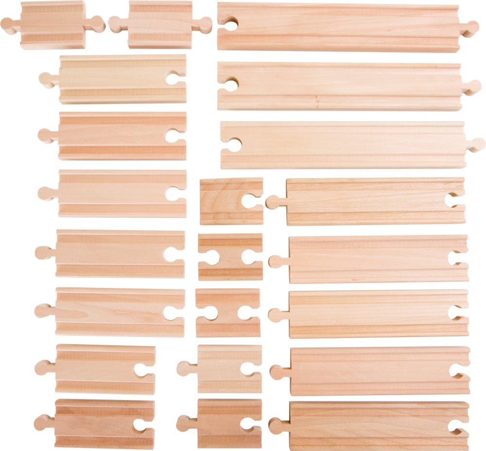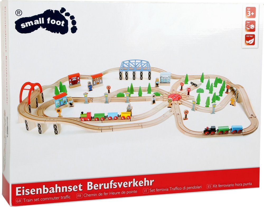 S touto dřevěnou železniční soupravou ožije život na kolejích. Robustní dřevěné koleje a výhybky umožňují vagonům bezpečně dojet do cíle. Krajinu doplňují stromy a různé dřevěné budovy, mosty, postavičky, lokomotivy a vagóny. Hlavní vlastnosti: Materiál: dřevoObsahuje 140 ksvhodné od 3+