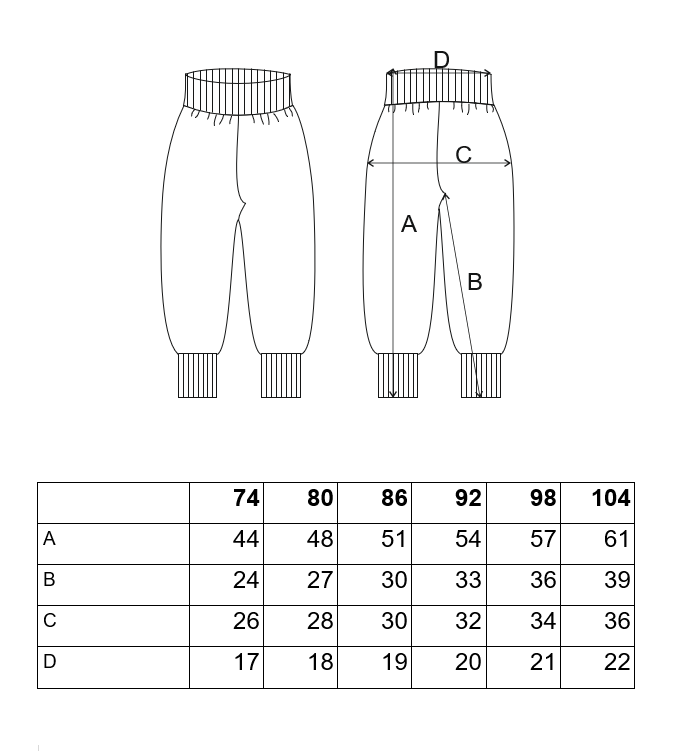Tepláky mají široký pružný náplet v pase a na nohavicích. Díky tomu tepláčky drží, nelezou, neodstávají a přizpůsobí se každému tvaru tělíčka. Jsou pohodlné a pružné. Ohrnutím nebo spuštěním nápletů na nohavicích a v pase můžete regulovat délku tepláků, když dítě povyroste. Reflexní logo na dolní části nohavice podporuje viditelnost.