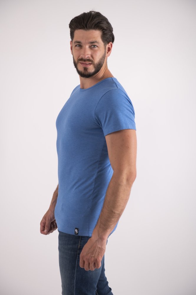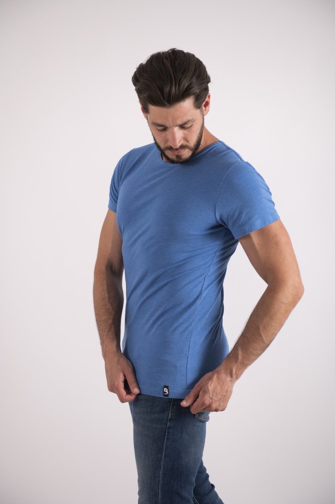 Tričko pánské KR tenké výstřih U Outlast® – modrý melír XXL